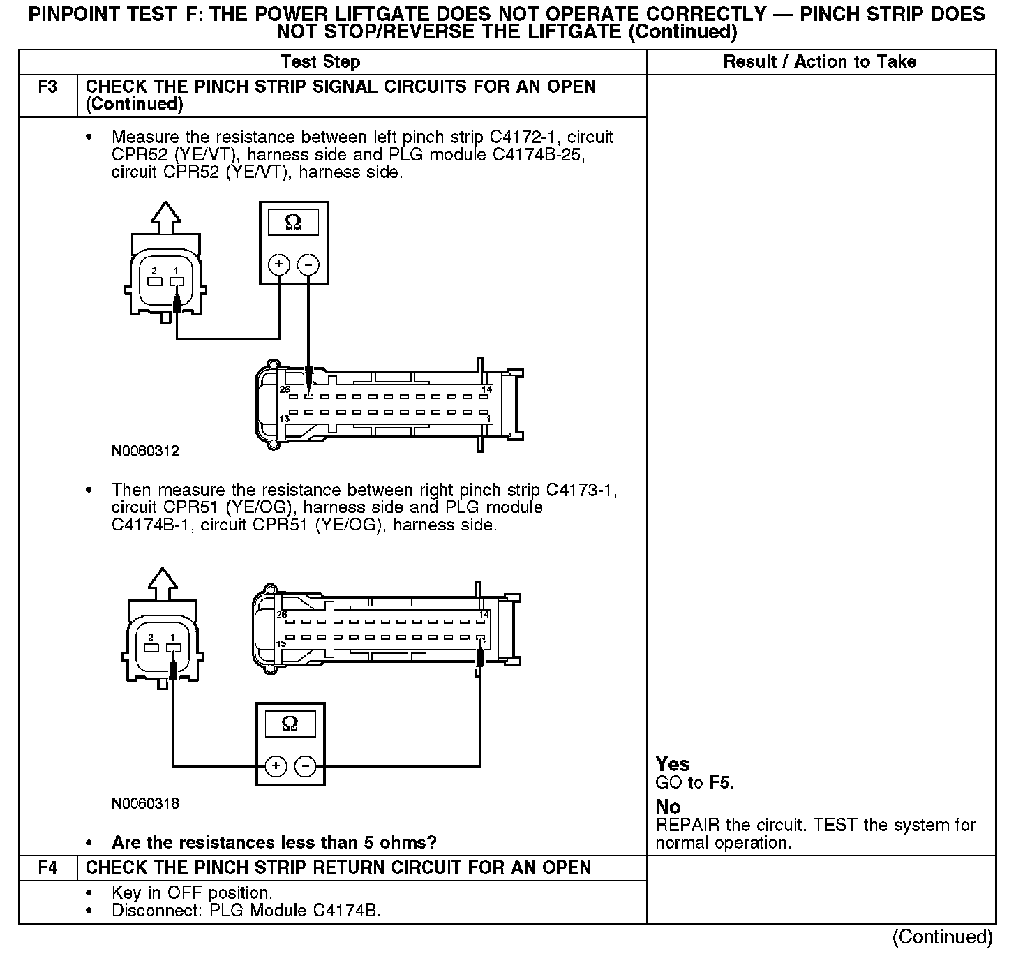 PINPOINT TEST F: THE POWER LIFTGATE DOES NOT OPERATE CORRECTLY - PINCH STRIP DOES NOT STOP/REVERSE THE LIFTGATEF1-F3: