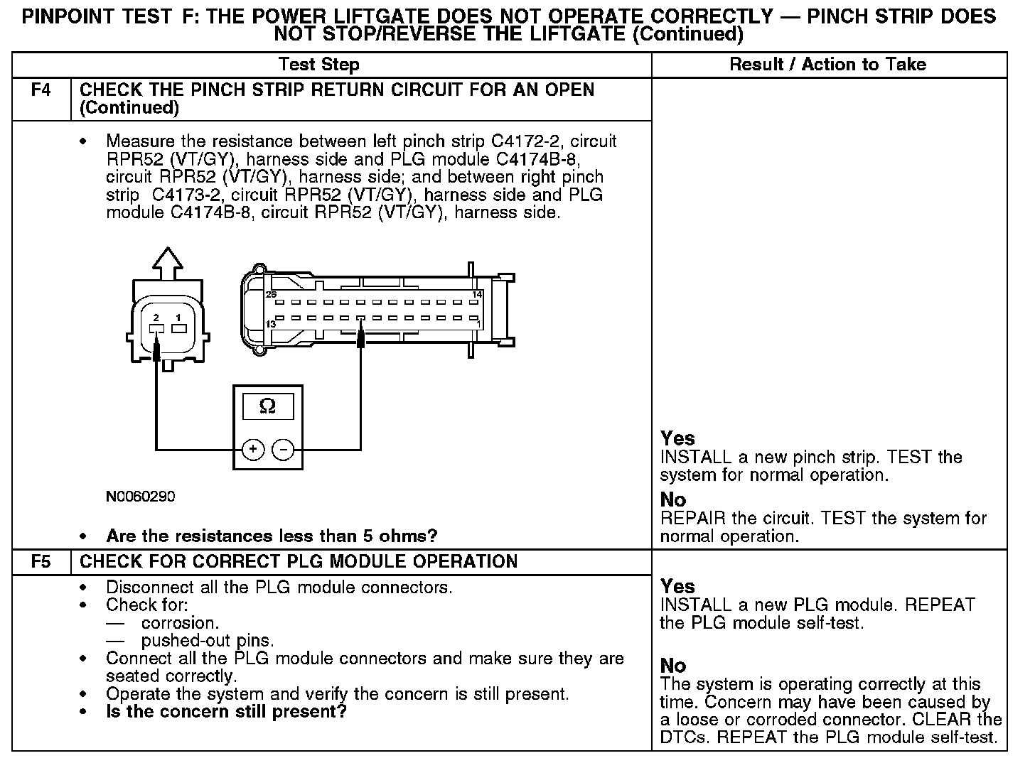 Test F: The Power Liftgate Does Not Operate Correctly - Pinch Strip Does Not Stop/Reverse The Liftgate