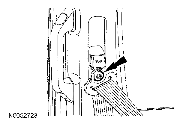 Remove the safety belt D-ring cover and remove the safety belt bolt.