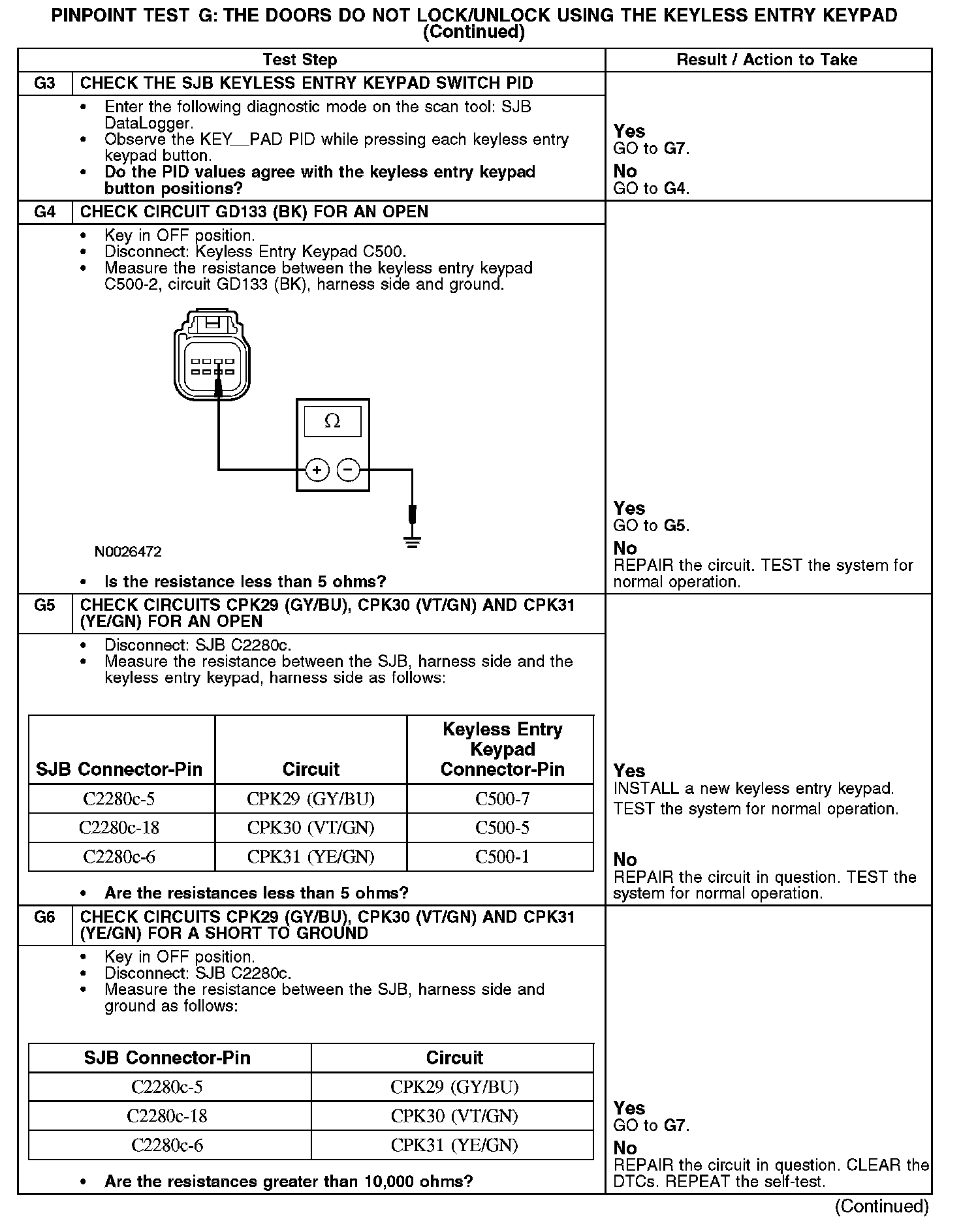PINPOINT TEST G: THE DOORS DO NOT LOCK/UNLOCK USING THE KEYLESS ENTRY KEYPAD