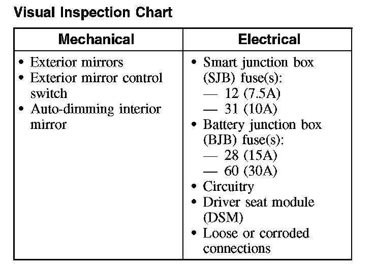 2. Inspect the components of the exterior mirror system to determine if any of the given mechanical or electrical concerns apply.