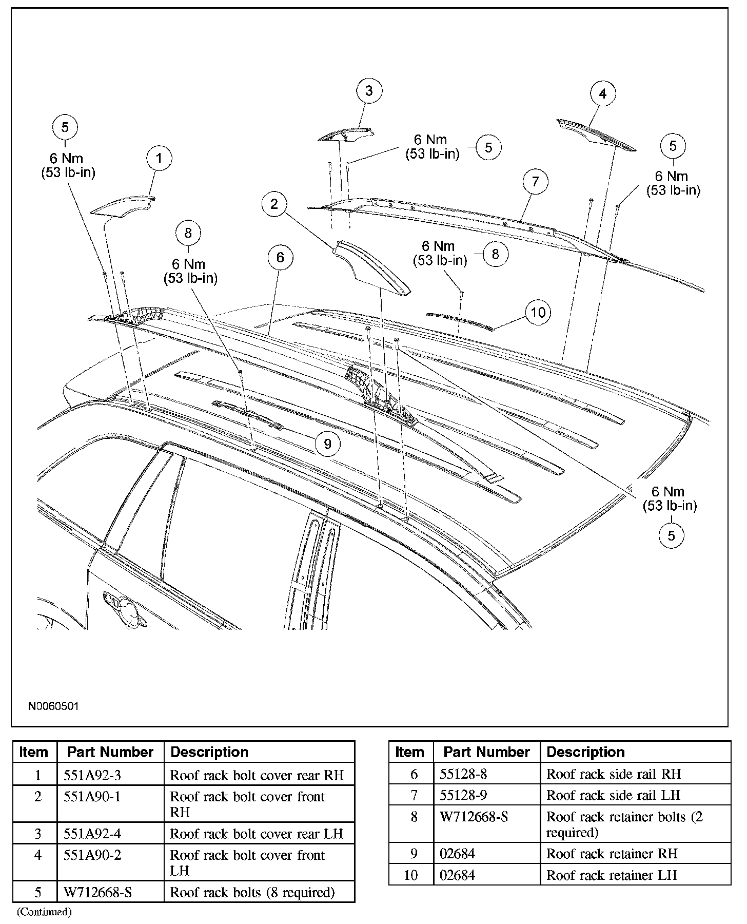- The 4 roof rack bolts are installed in a specific order starting with the front bolt and working toward the rear of the vehicle. The bolts must be installed in that order to make sure the roof rack side rail is correctly aligned.