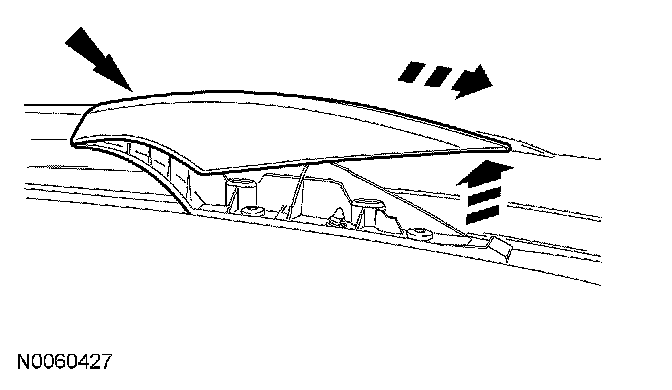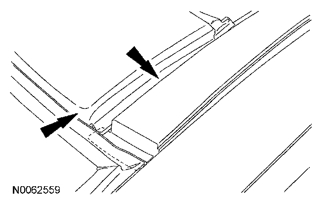 5. NOTE: The roof rack side rail has a tab located at the front of the ditch moulding and it is installed under the windshield moulding. When installing the roof rack side rail, start at the front of the vehicle and work toward the rear.