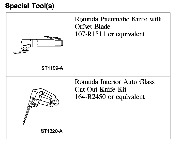 1. CAUTION: Use caution when cutting to prevent damage to the windshield glass seal.