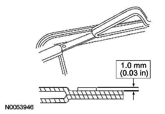 Using an appropriate tool, trim the urethane adhesive leaving no more than 1 mm (0.03 in) base of original equipment urethane along the roof opening module body mounting surface.