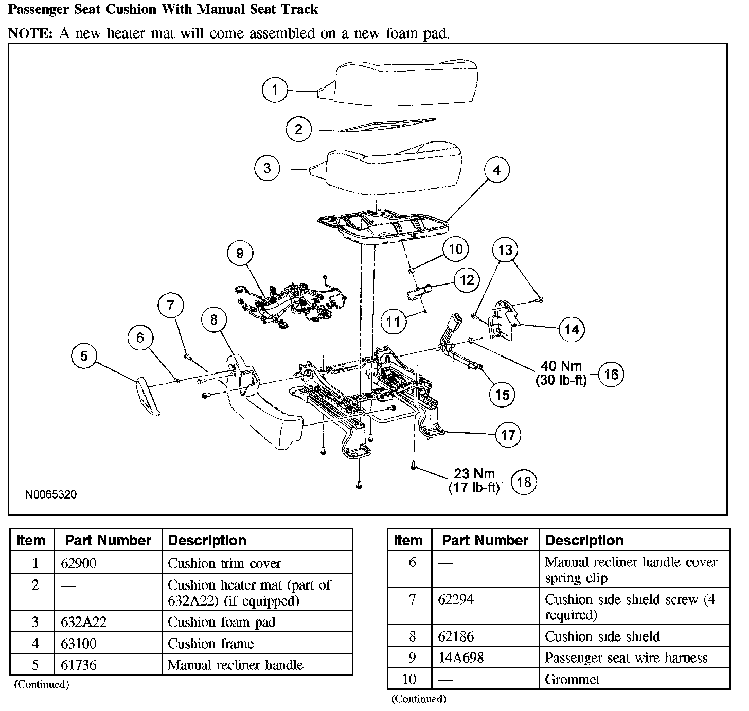 Passenger Seat Cushion With Manual Seat Track (Part 2):