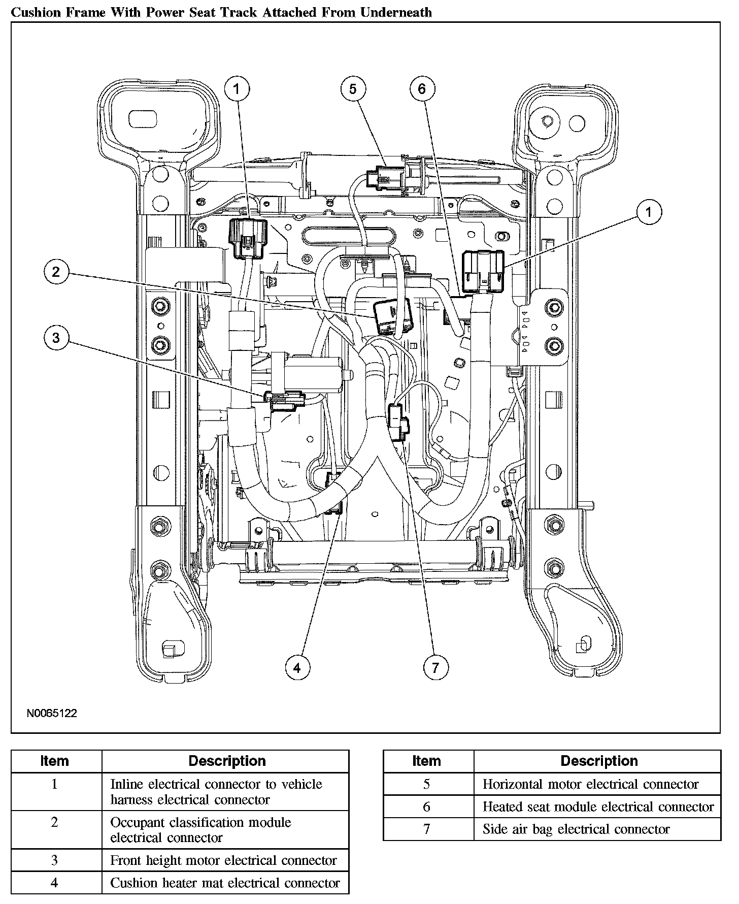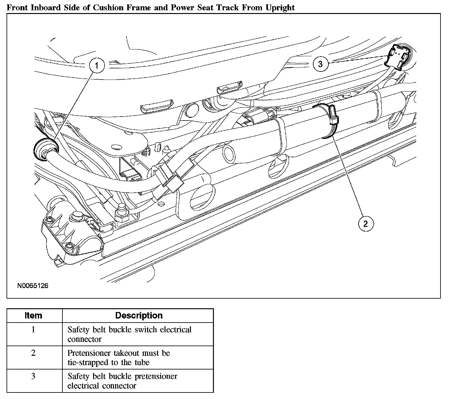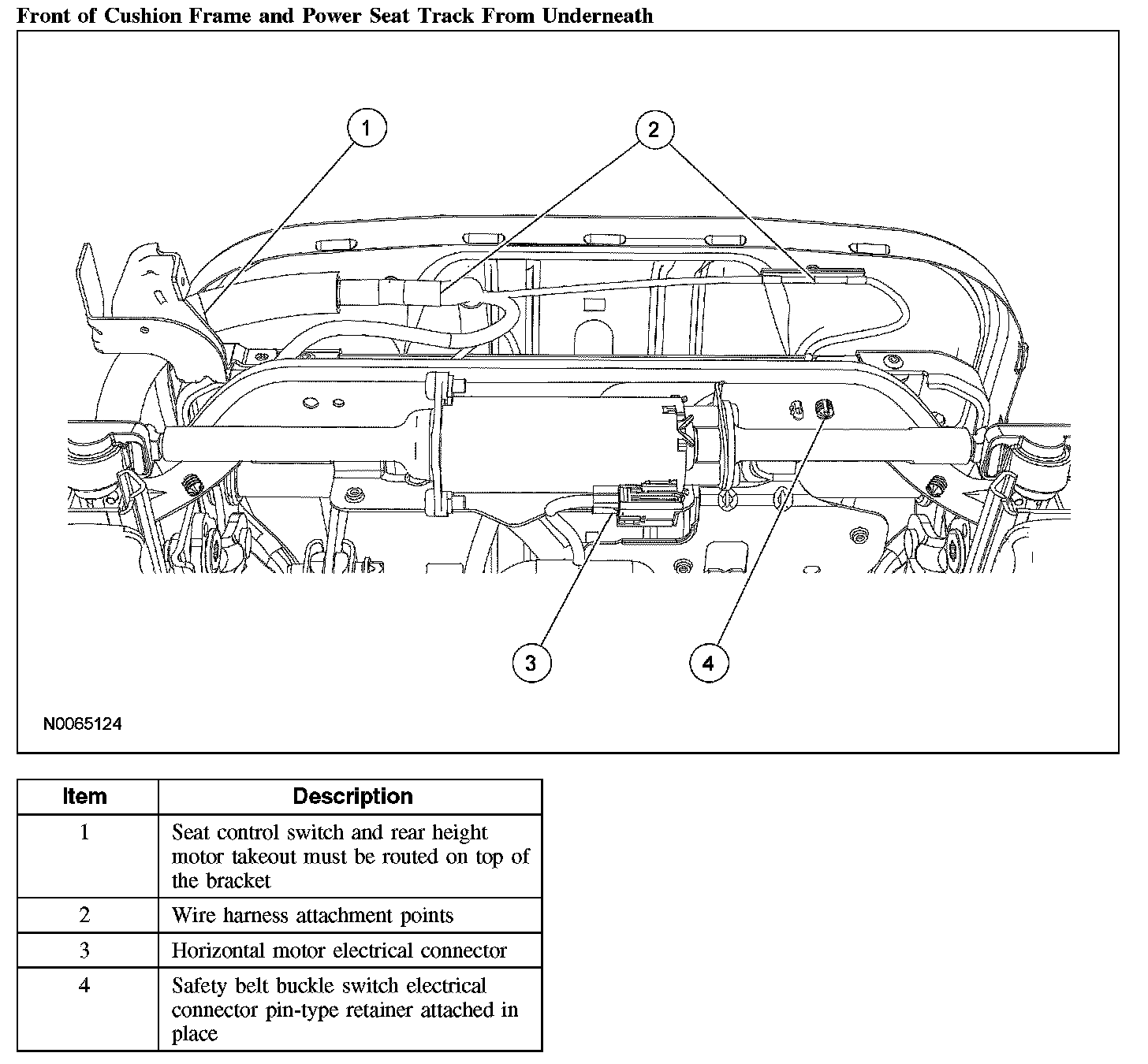 1. Make sure the passenger seat cushion wire harness is correctly routed and attached.