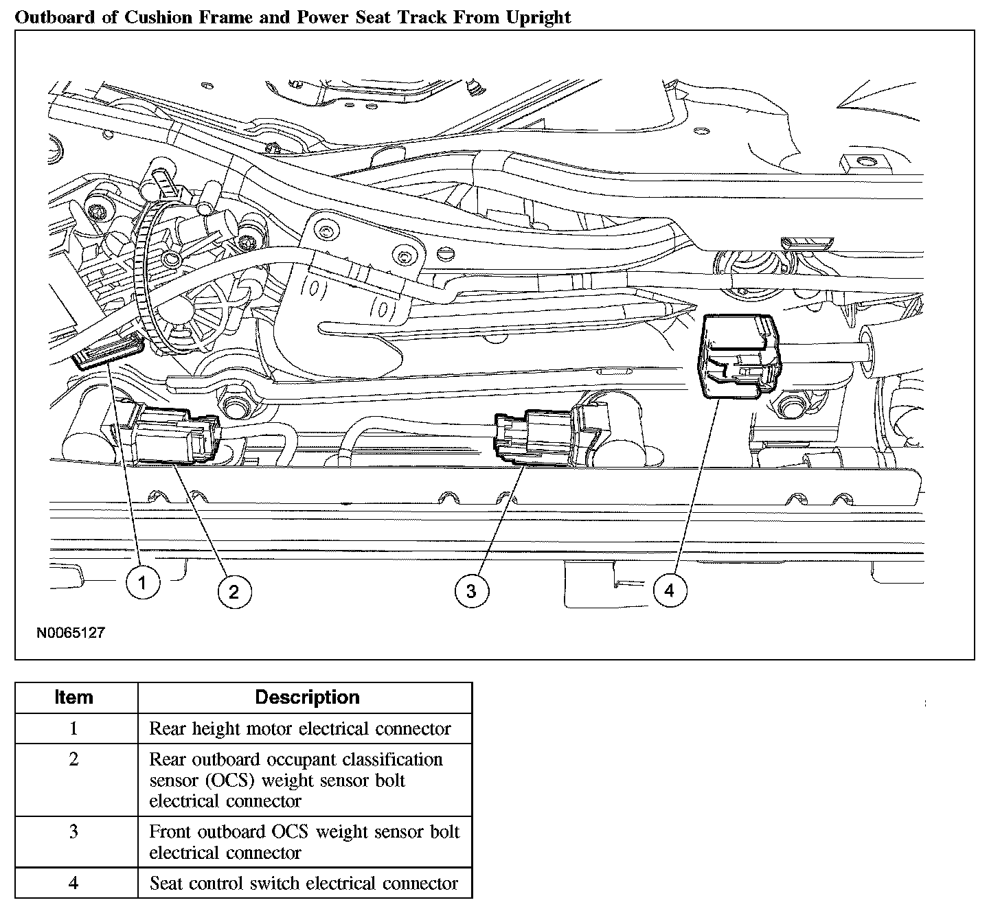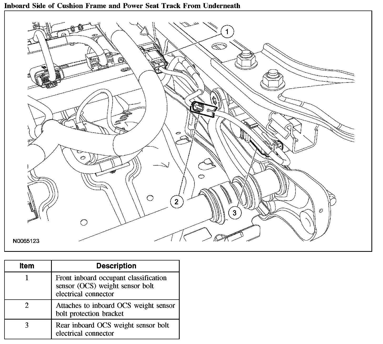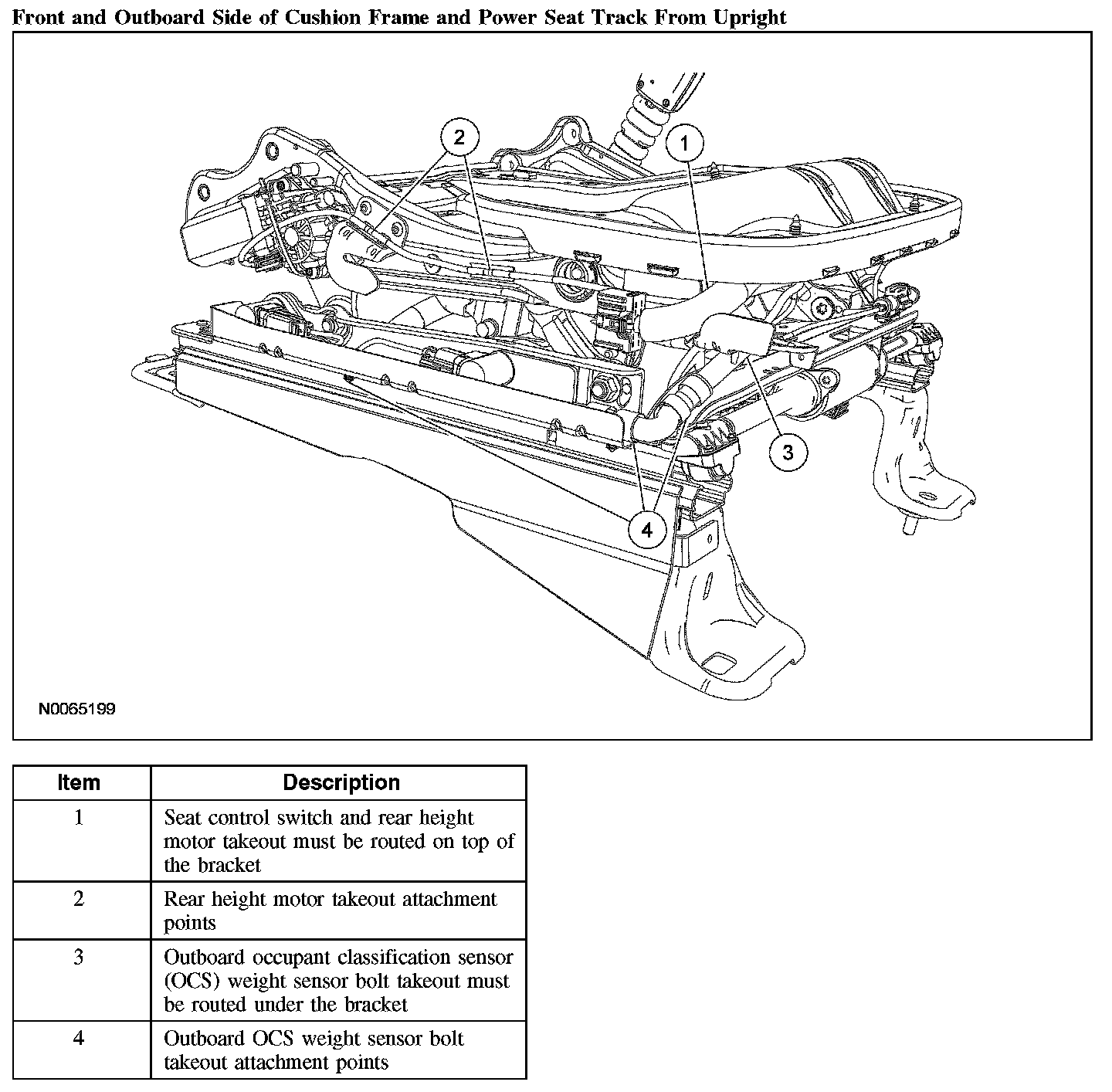 1. Make sure the passenger seat cushion wire harness is correctly routed and attached.