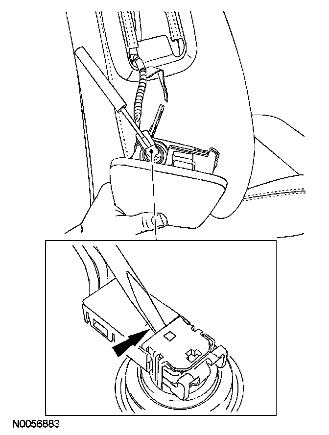 1. Position the seat to access all the seat track-to-floor bolts and the safety belt retractor belt anchor nut.