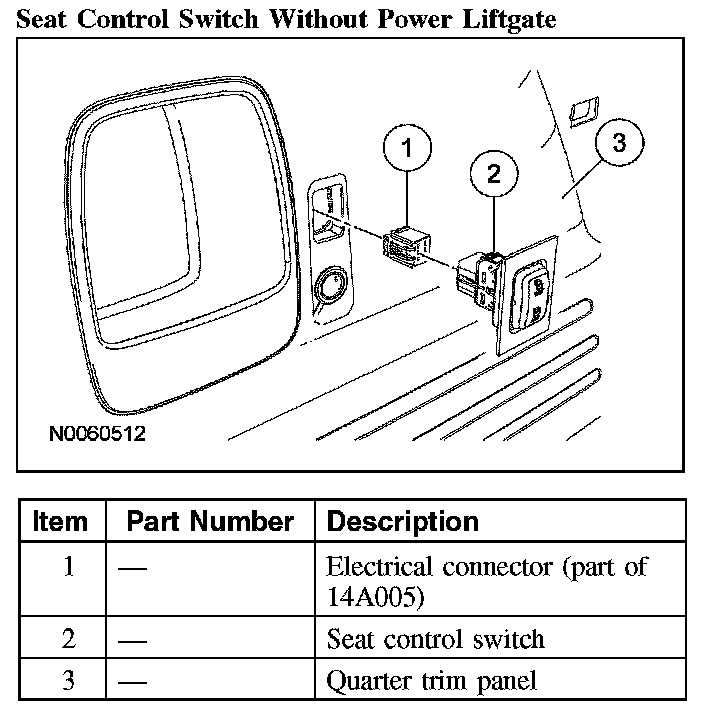 SEAT CONTROL SWITCH - REAR SEATSeat Control Switch Without Power Liftgate: