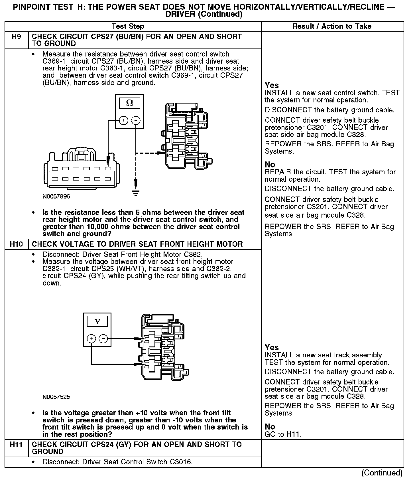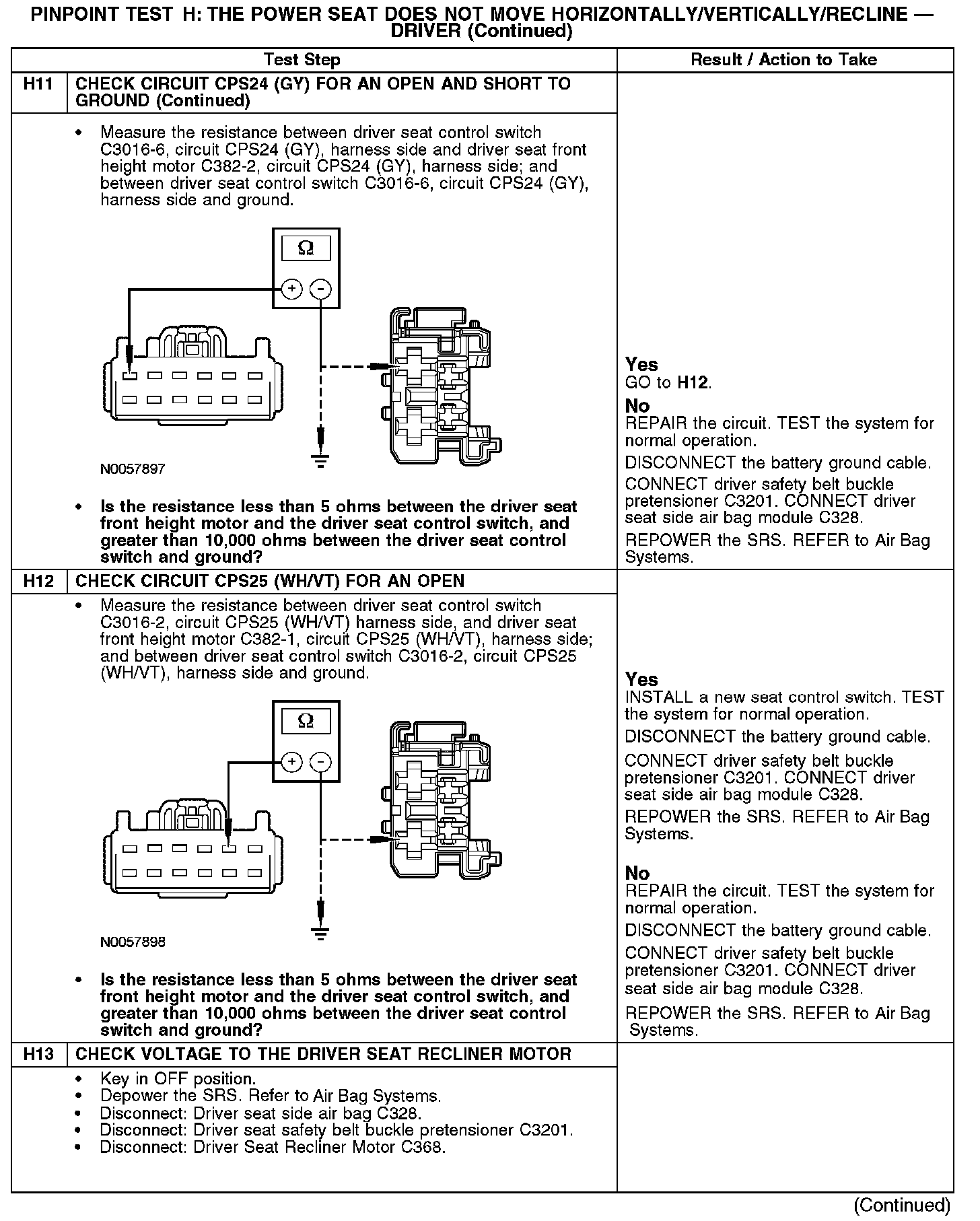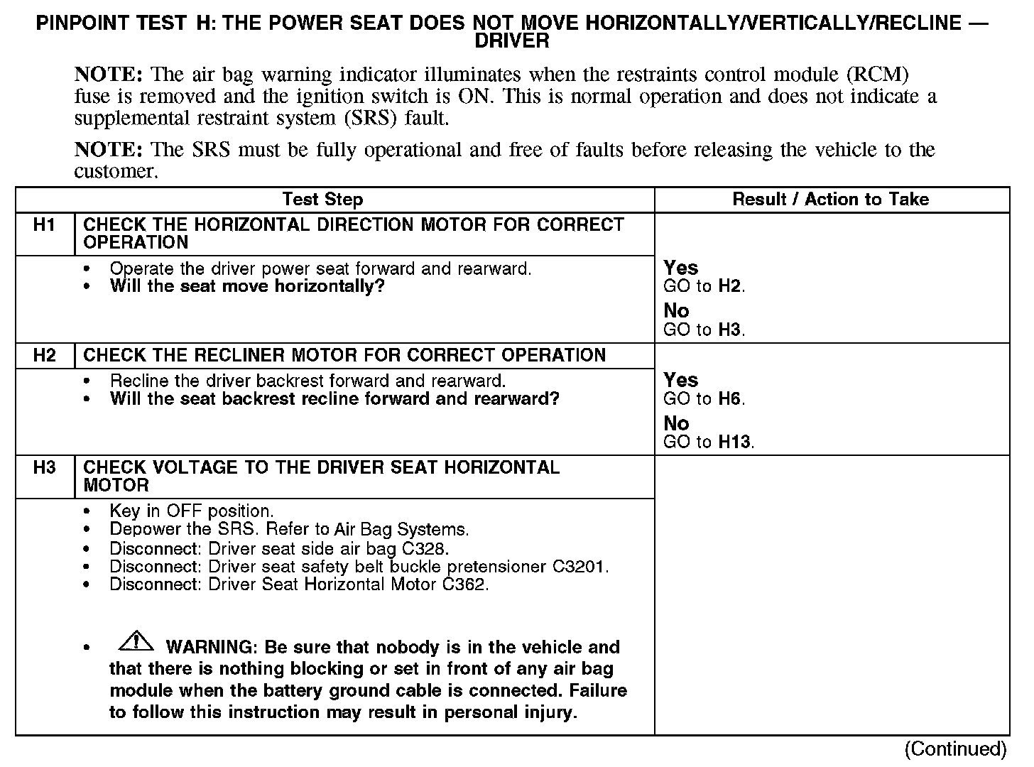 PINPOINT TEST H: THE POWER SEAT DOES NOT MOVE HORIZONTALLY/VERTICALLY/RECLINE - DRIVER