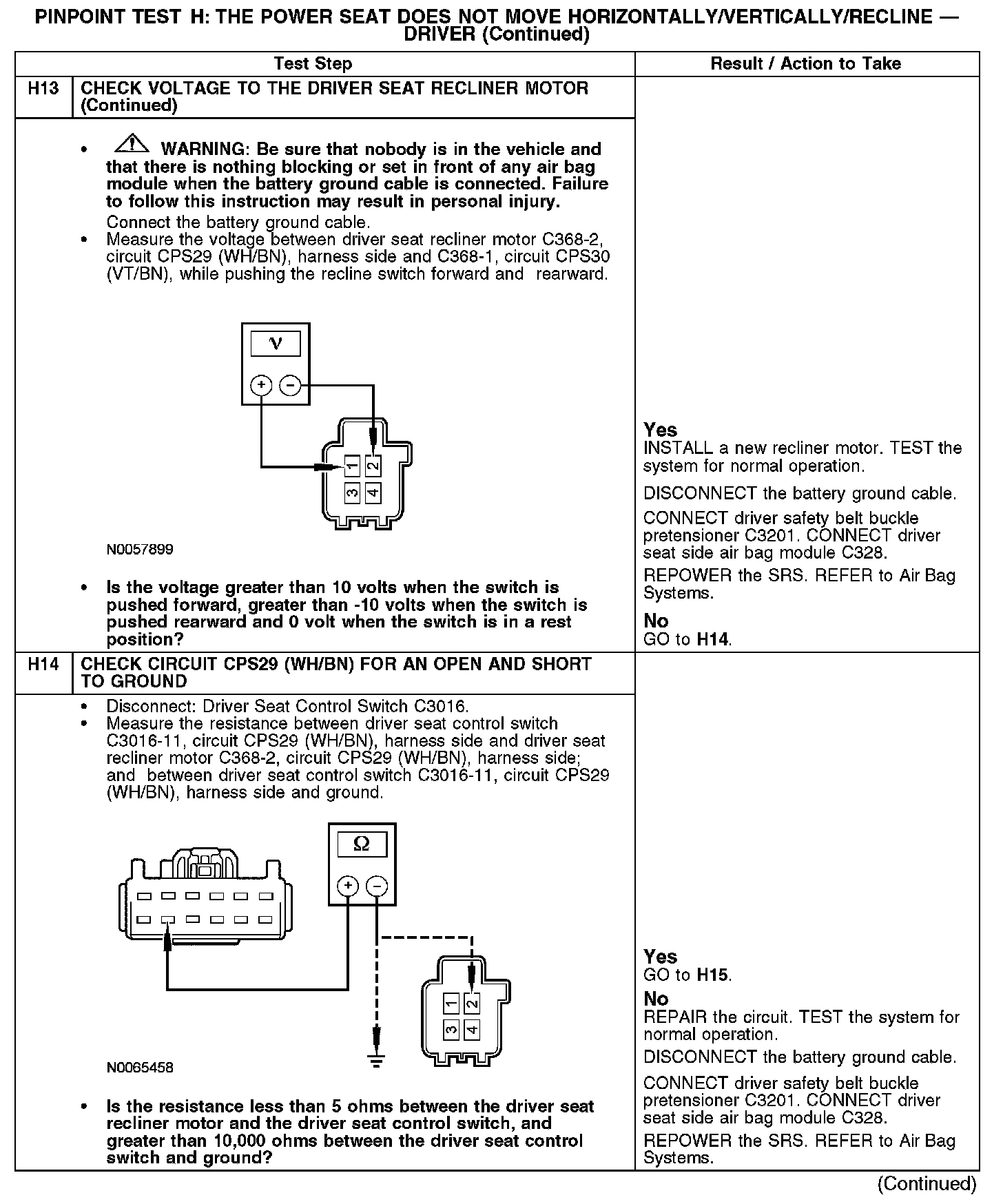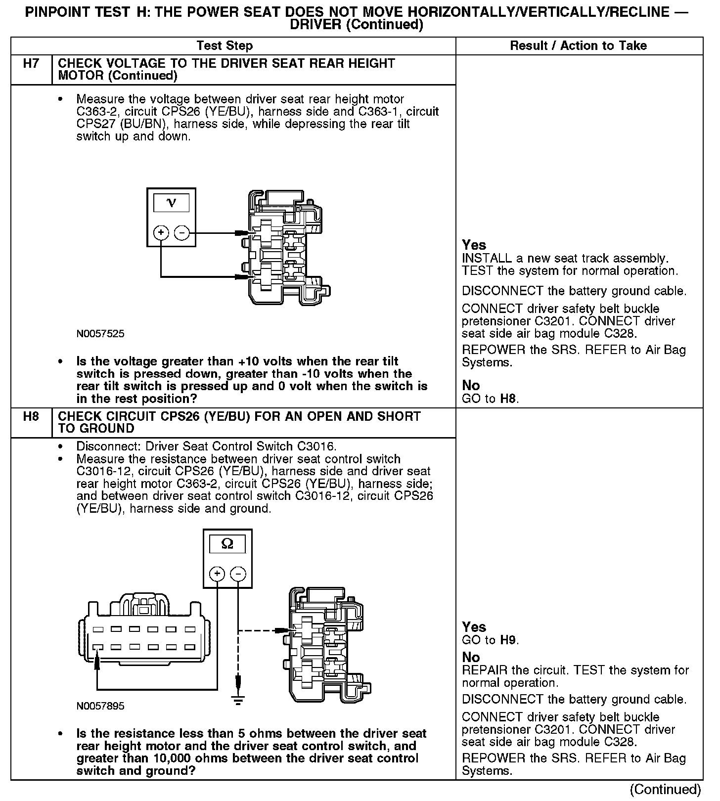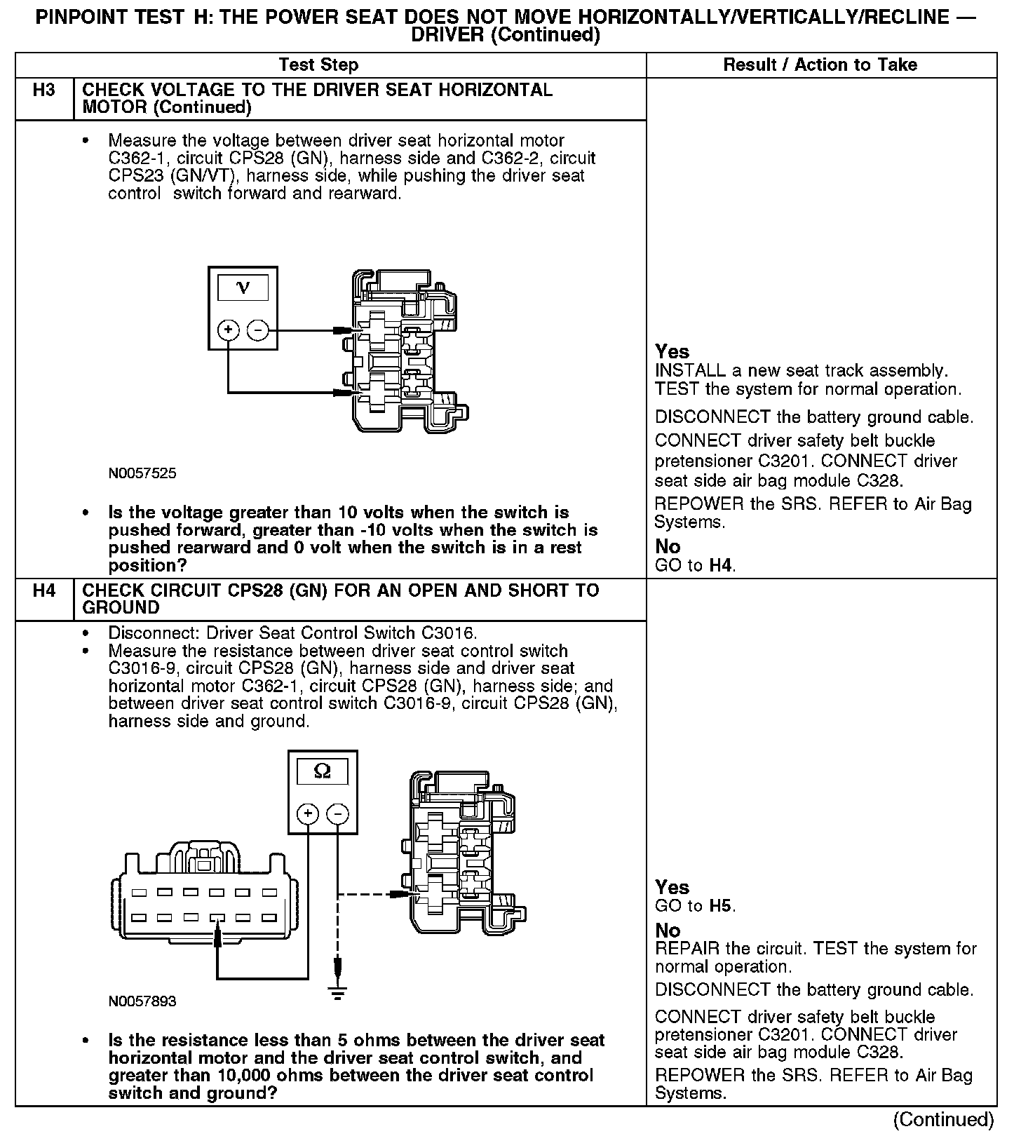 PINPOINT TEST H: THE POWER SEAT DOES NOT MOVE HORIZONTALLY/VERTICALLY/RECLINE - DRIVER