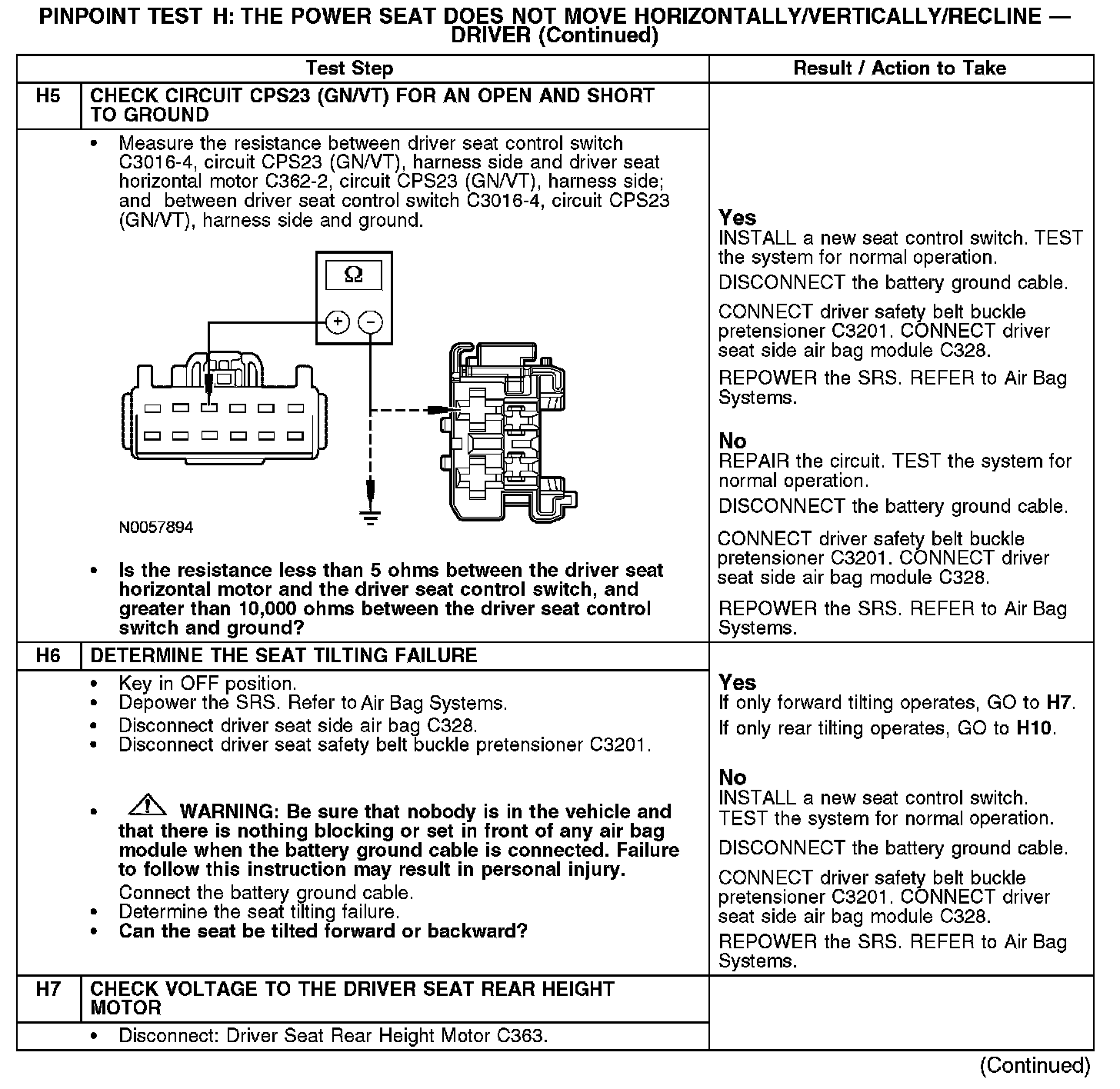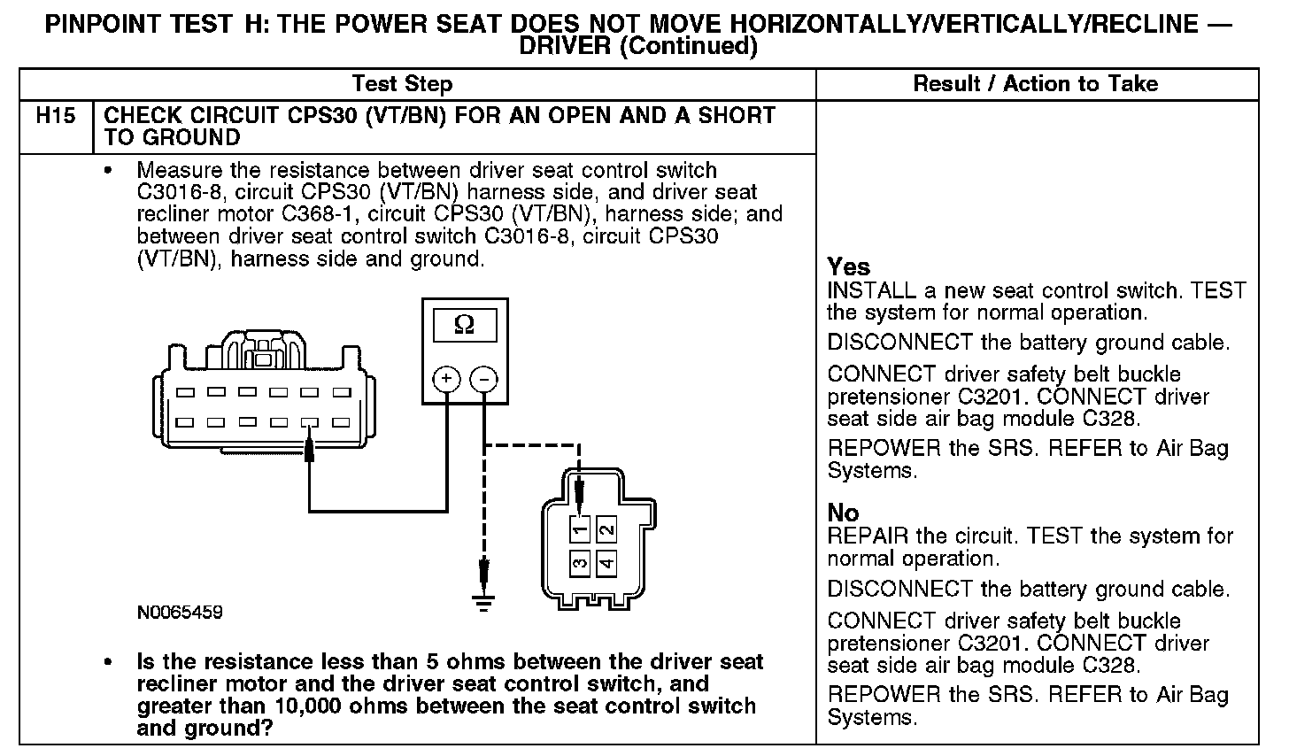 Test H: The Power Seat Does Not Move Horizontally/Vertically/Recline - Driver