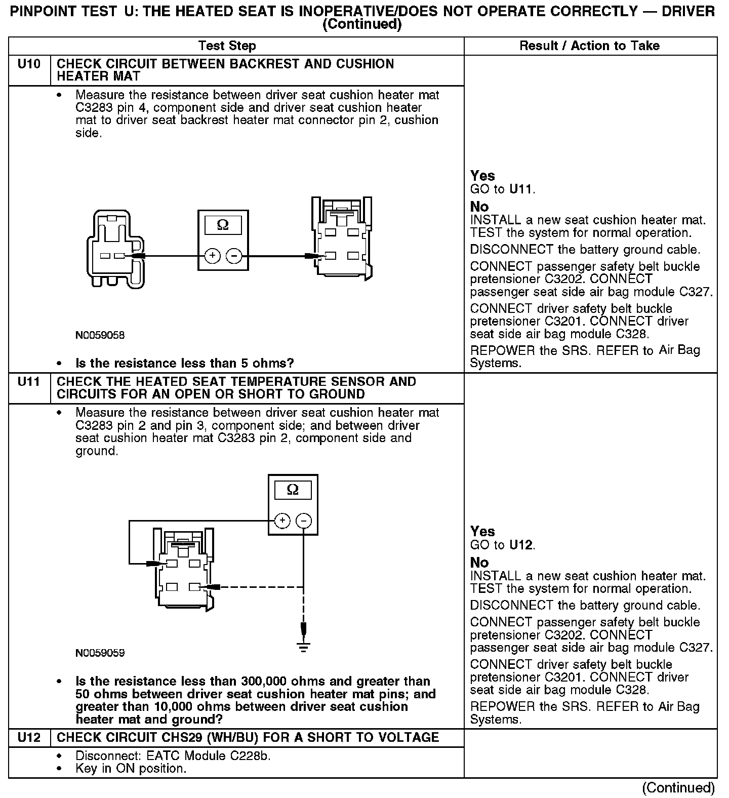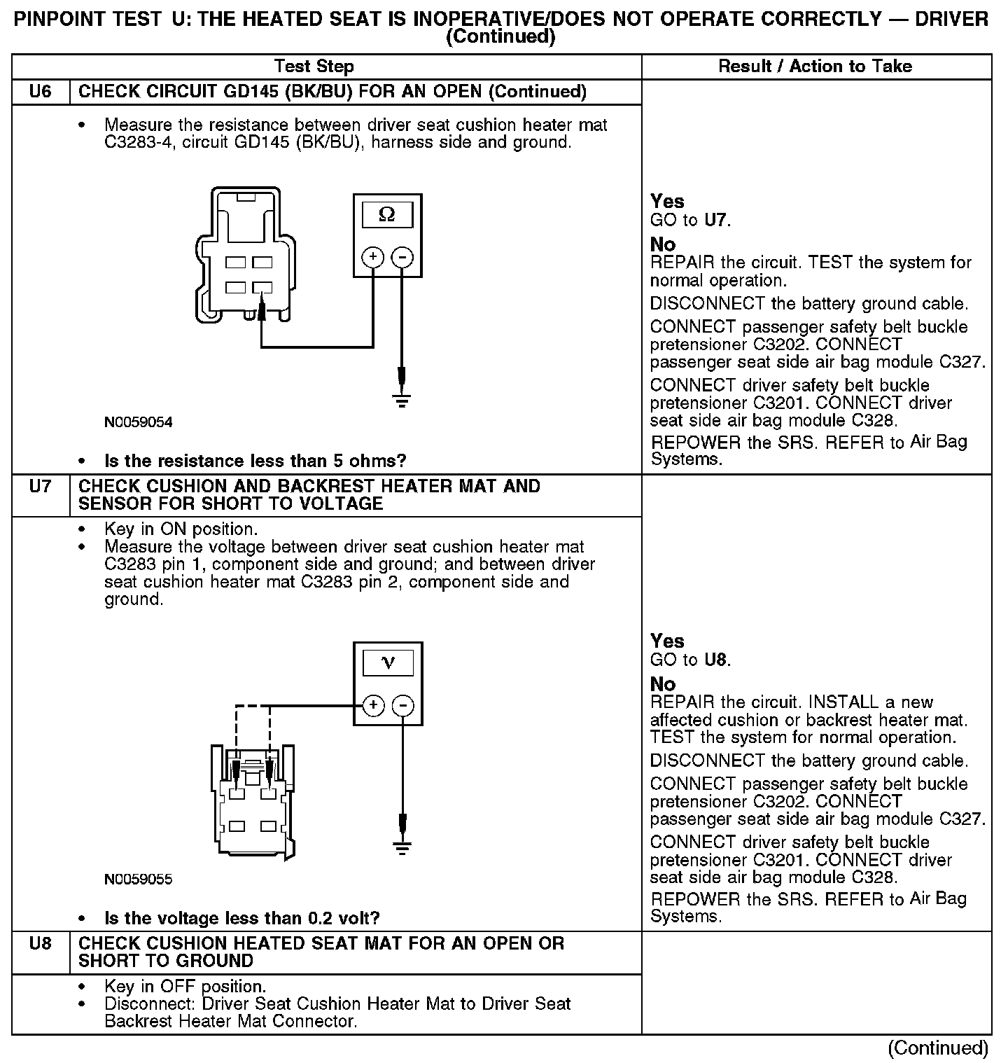 Test U: The Heated Seat Is Inoperative/Does Not Operate Correctly - Driver