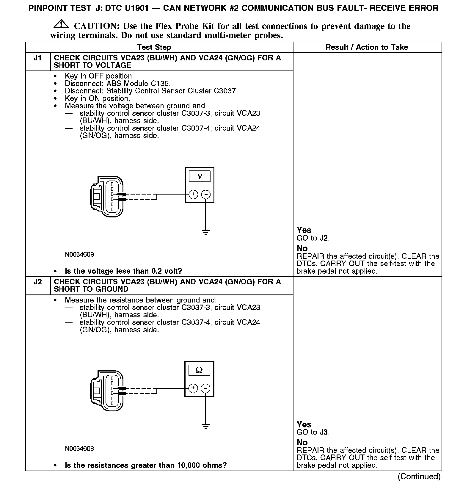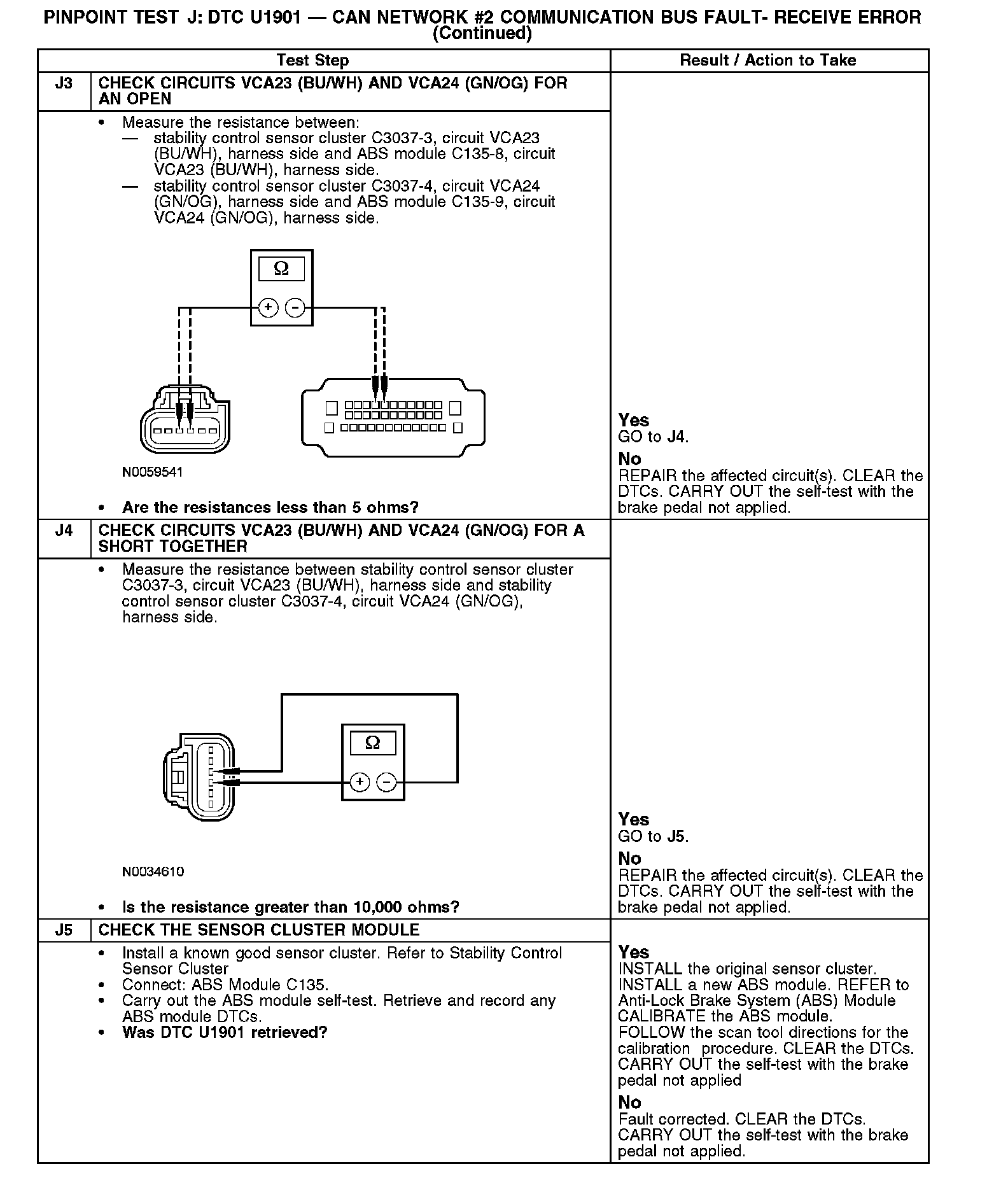 Pinpoint Test J: DTC U1901 - CAN Network #2 Communication Bus Fault - Receive ErrorRefer to Vehicle/Diagrams, Vehicle Dynamic Systems for schematic and connector information.