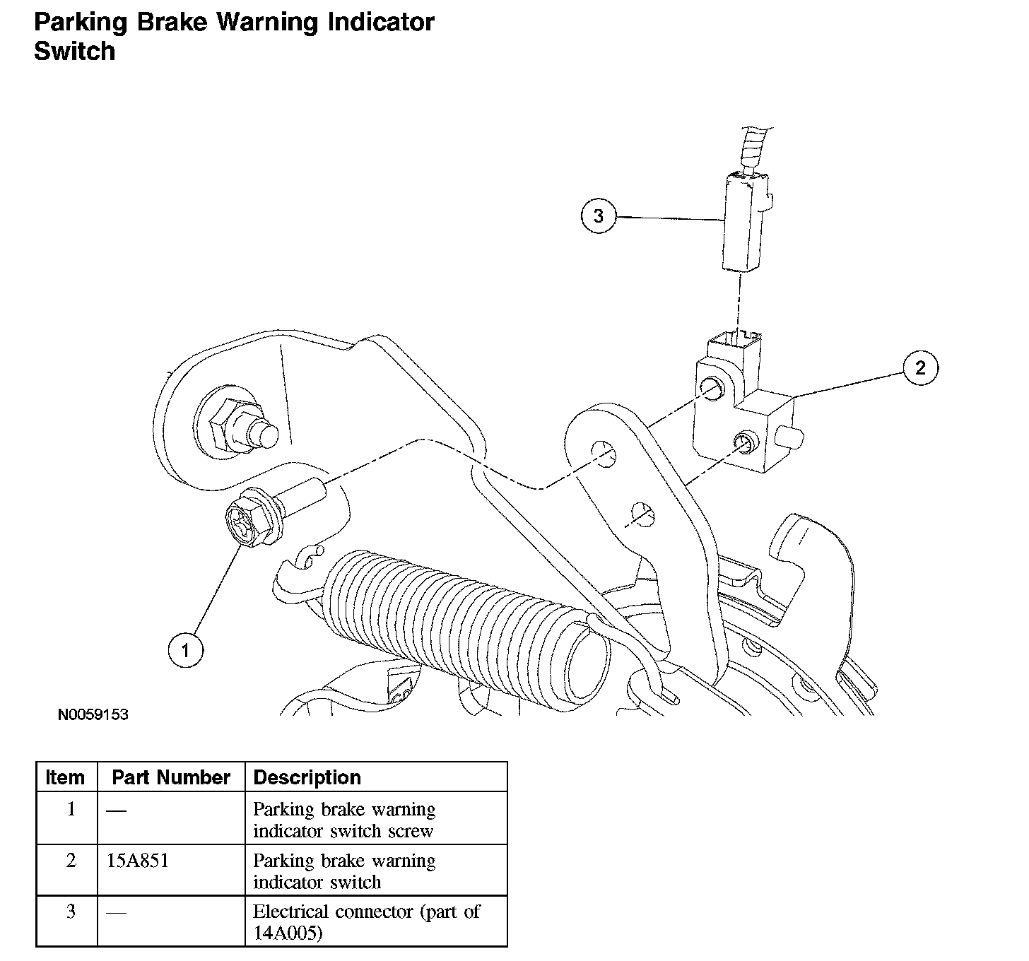 Parking Brake Warning Indicator SwitchParking Brake Warning Indicator Switch: