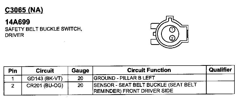 Safety Belt Buckle Switch, Driver