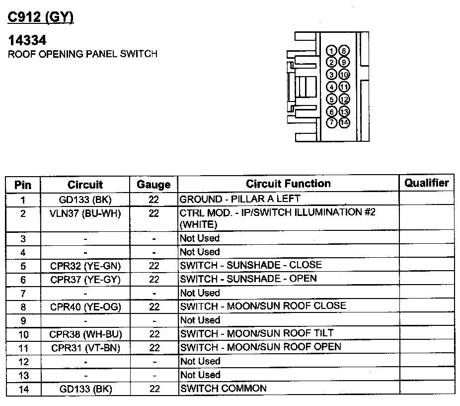 Sunroof / Moonroof Switch