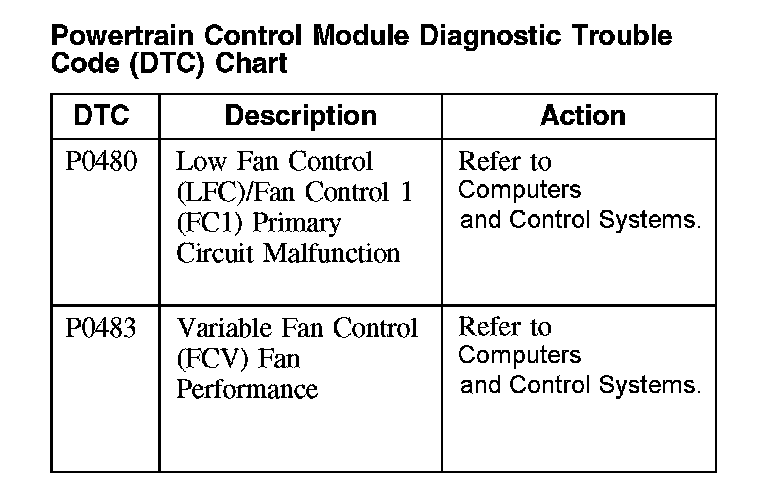 Powertrain Control Module Diagnostic Trouble Code (DTC) Chart
