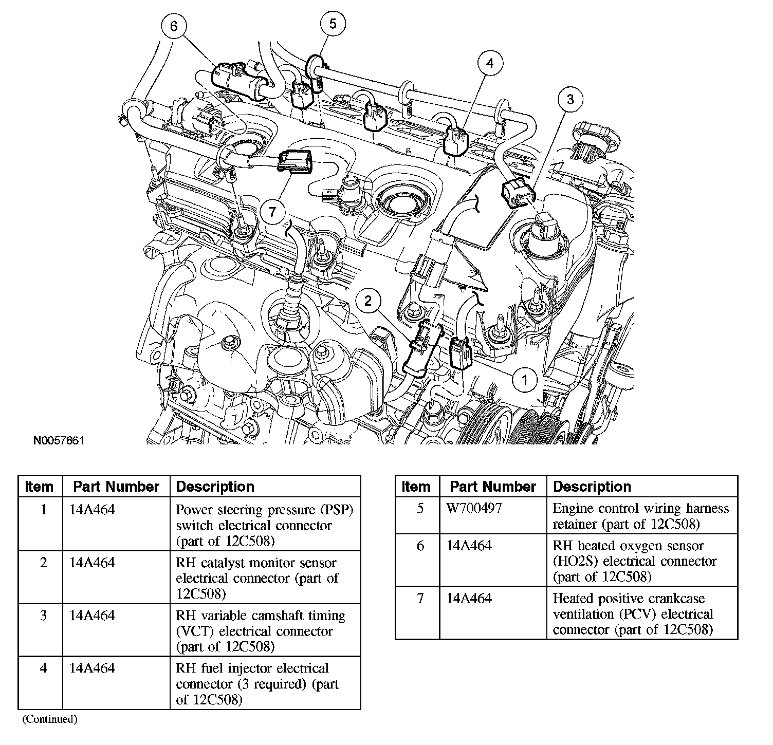 5. Disconnect the RH variable camshaft timing (VCT) electrical connector.