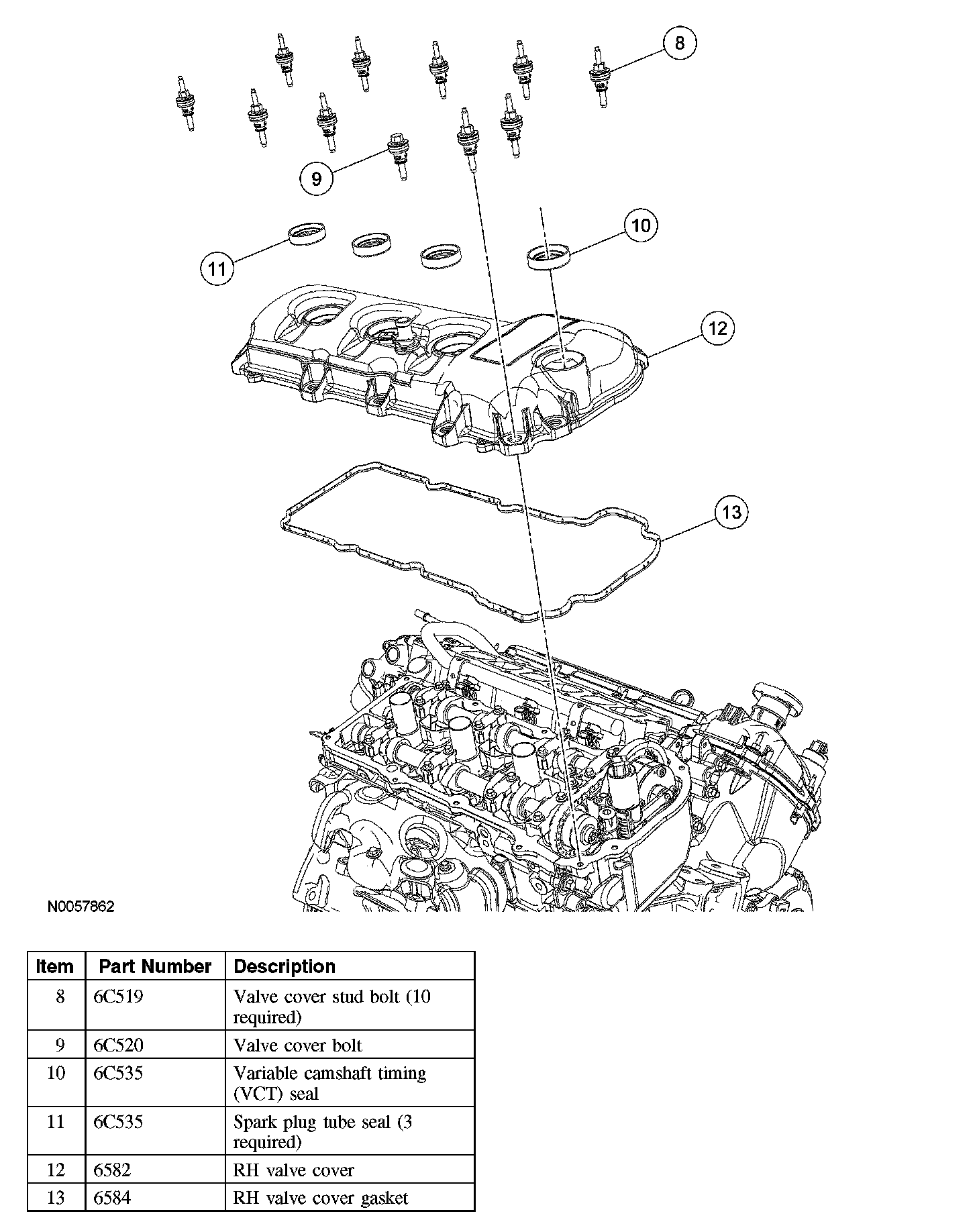 10. NOTE: VCT solenoid seal removal shown, spark plug tube seal removal similar.