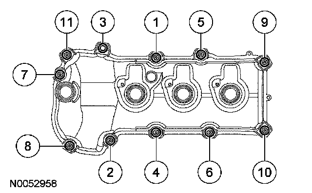 2. NOTE: If the valve cover is not installed and the fasteners tightened within 5 minutes, the sealant must be removed and the sealing area cleaned. To clean the sealing area, use silicone gasket remover and metal surface prep. Follow the directions on the packaging. Failure to follow this procedure can cause future oil leakage.