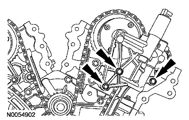 Install the LH VCT housing and the 3 bolts.