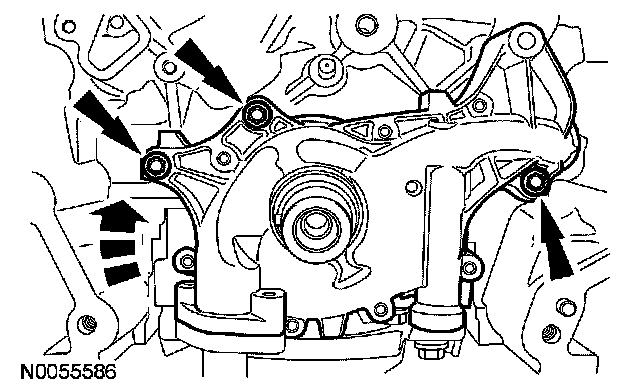 14. Remove the 3 oil pump bolts.