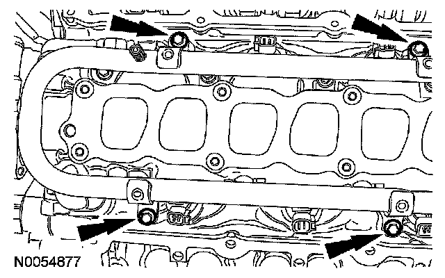 76. Install the fuel rail and injectors as an assembly and install the 4 bolts.