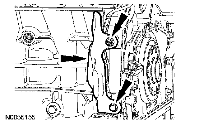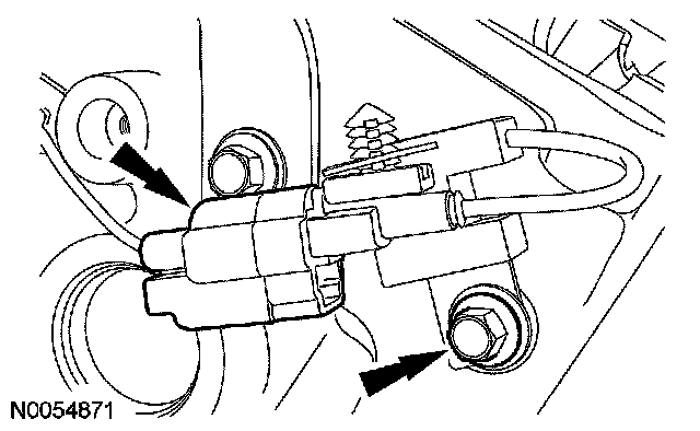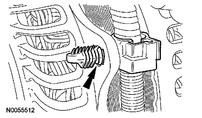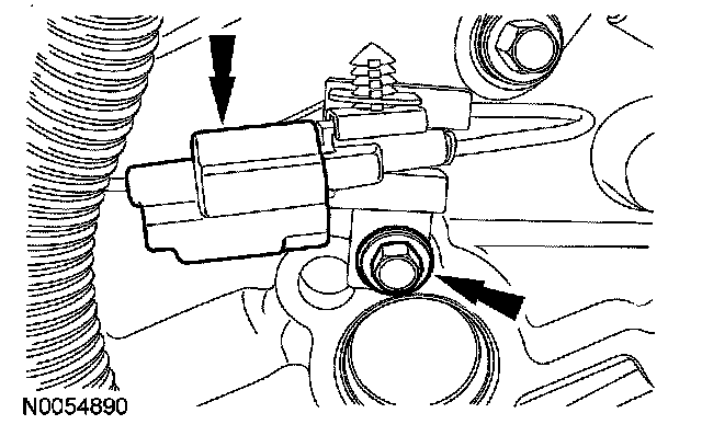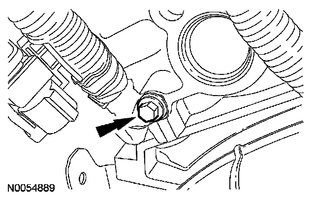 103. Install the wiring harness retainer bolt on the rear of the LH cylinder head.