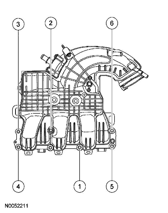 123. Using a new gasket, install the upper intake manifold and the 6 bolts.