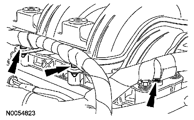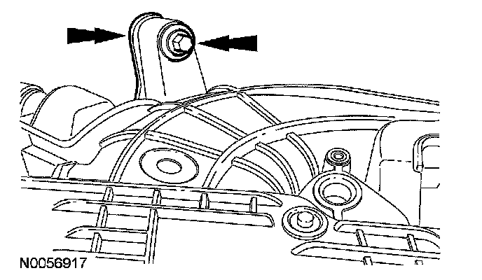 124. Install the upper intake manifold support bracket and the 2 bolts (1 shown).