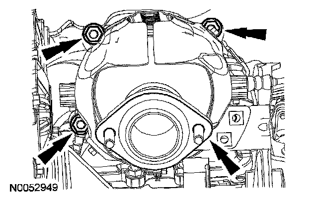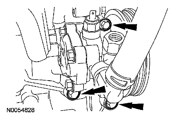 67. Remove the 3 thermostat housing-to-lower intake manifold bolts.
