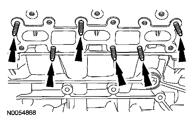 57. Remove and discard the 6 RH exhaust manifold studs.