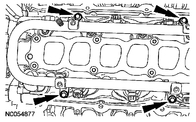 66. Remove the 4 bolts and the fuel rail and injectors as an assembly.