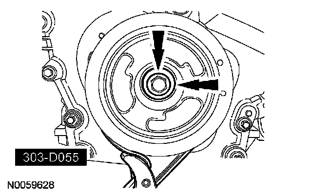 1 Tighten the bolts one turn at a time in a criss-cross pattern until the engine front cover-to-cylinder block seal is released.