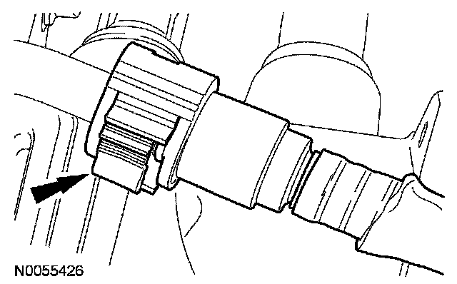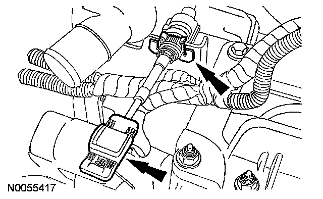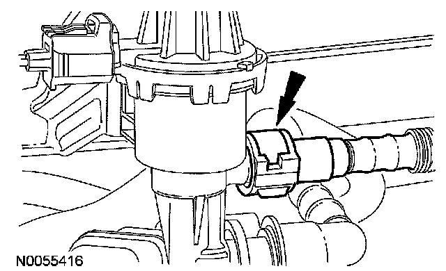 14. Disconnect the upper evaporative emissions (EVAP) tube quick connect coupling from the purge valve. For additional information, refer to Fuel Delivery and Air Induction.
