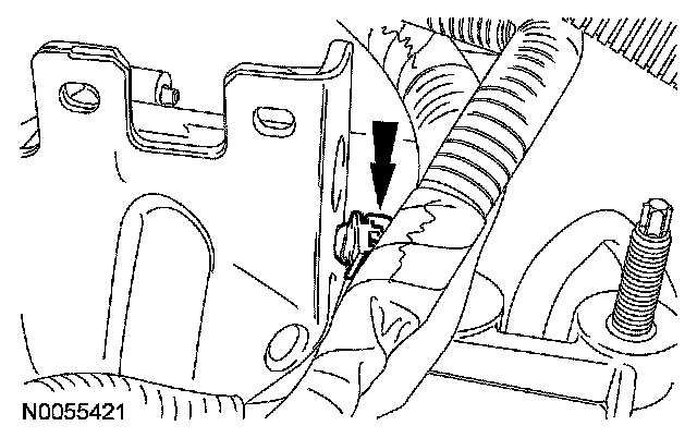 16. Detach the wiring harness retainer from the transaxle control cable bracket.