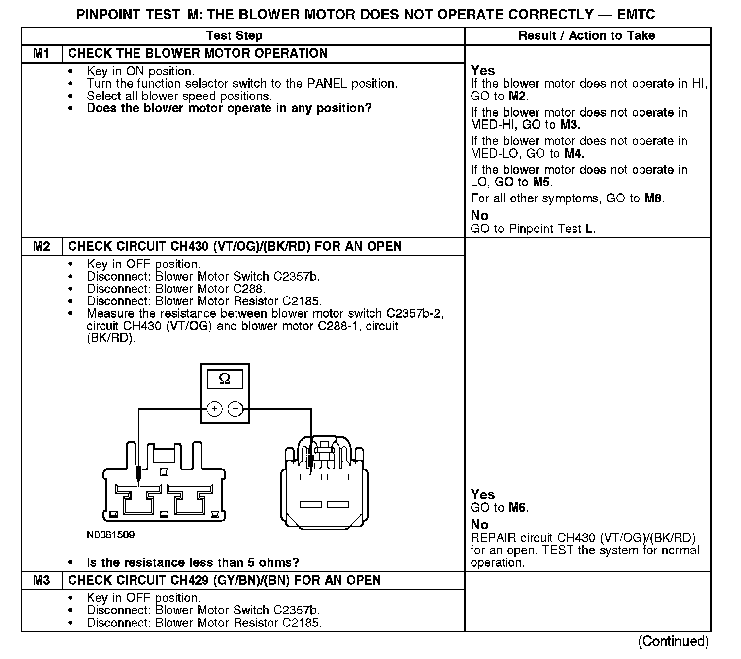 Test M: The Blower Motor Does Not Operate Correctly - EMTC