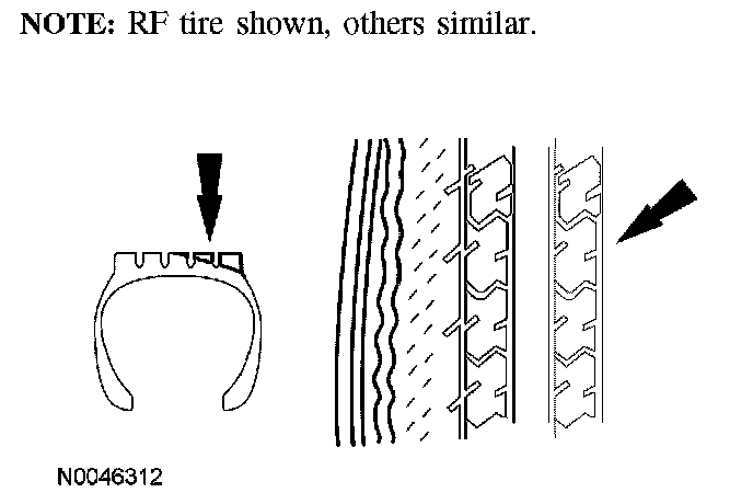 3. Tread wear indicators are molded into the bottom of the tread grooves. Install a new tire when the indicator bands become visible.