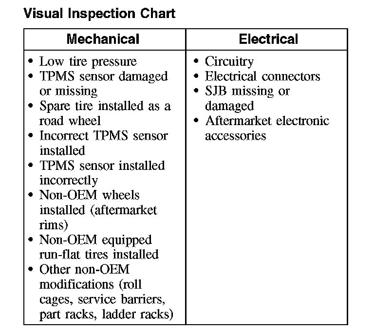 Inspection and Verification1. NOTE: The tire pressure sensors are not designed to be used with aftermarket wheels.