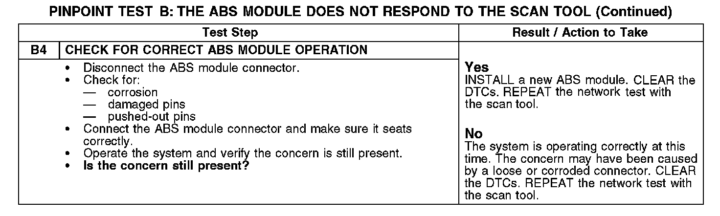 PINPOINT TEST B: THE ABS MODULE DOES NOT RESPOND TO THE SCAN TOOL