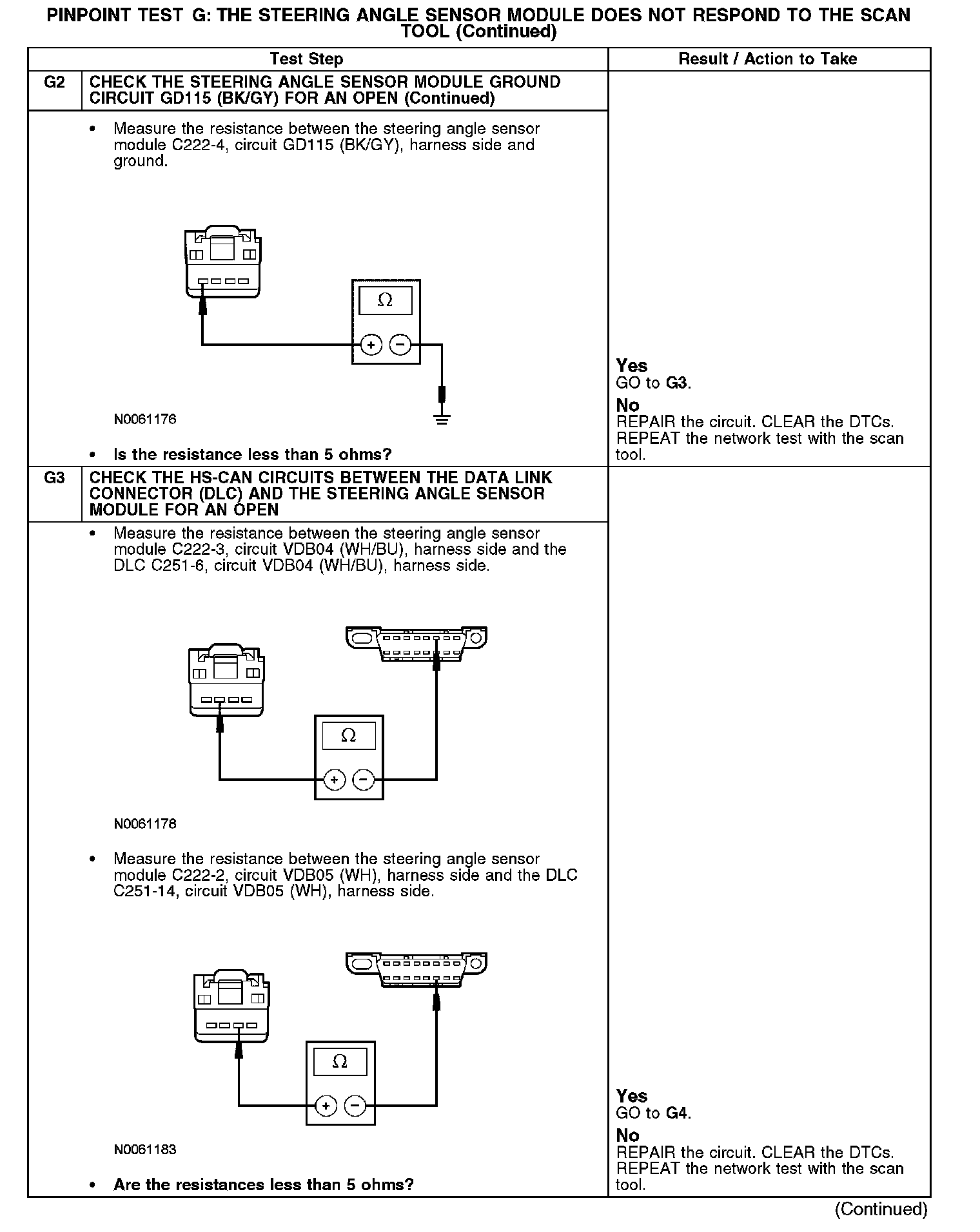 PINPOINT TEST G: THE STEERING ANGLE SENSOR MODULE DOES NOT RESPOND TO THE SCAN TOOLG1-G2: