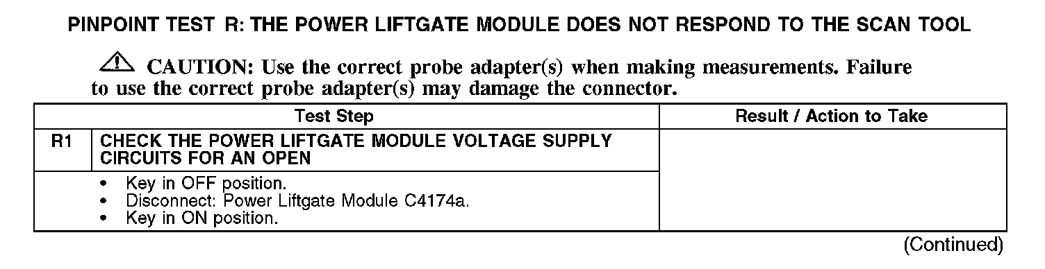 PINPOINT TEST R: THE POWER LIFTGATE MODULE DOES NOT RESPOND TO THE SCAN TOOLR1: