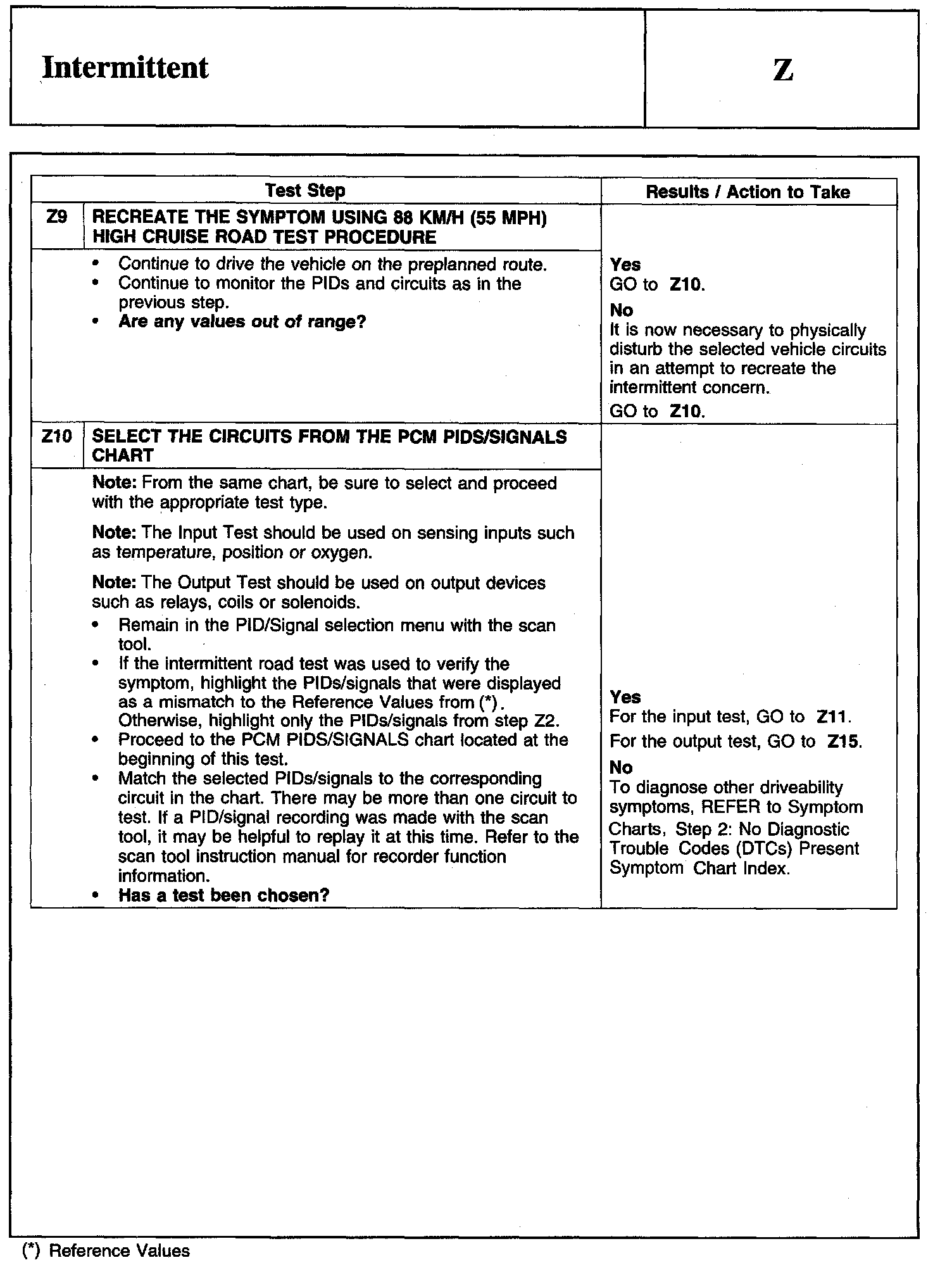 Test Z: Intermittent