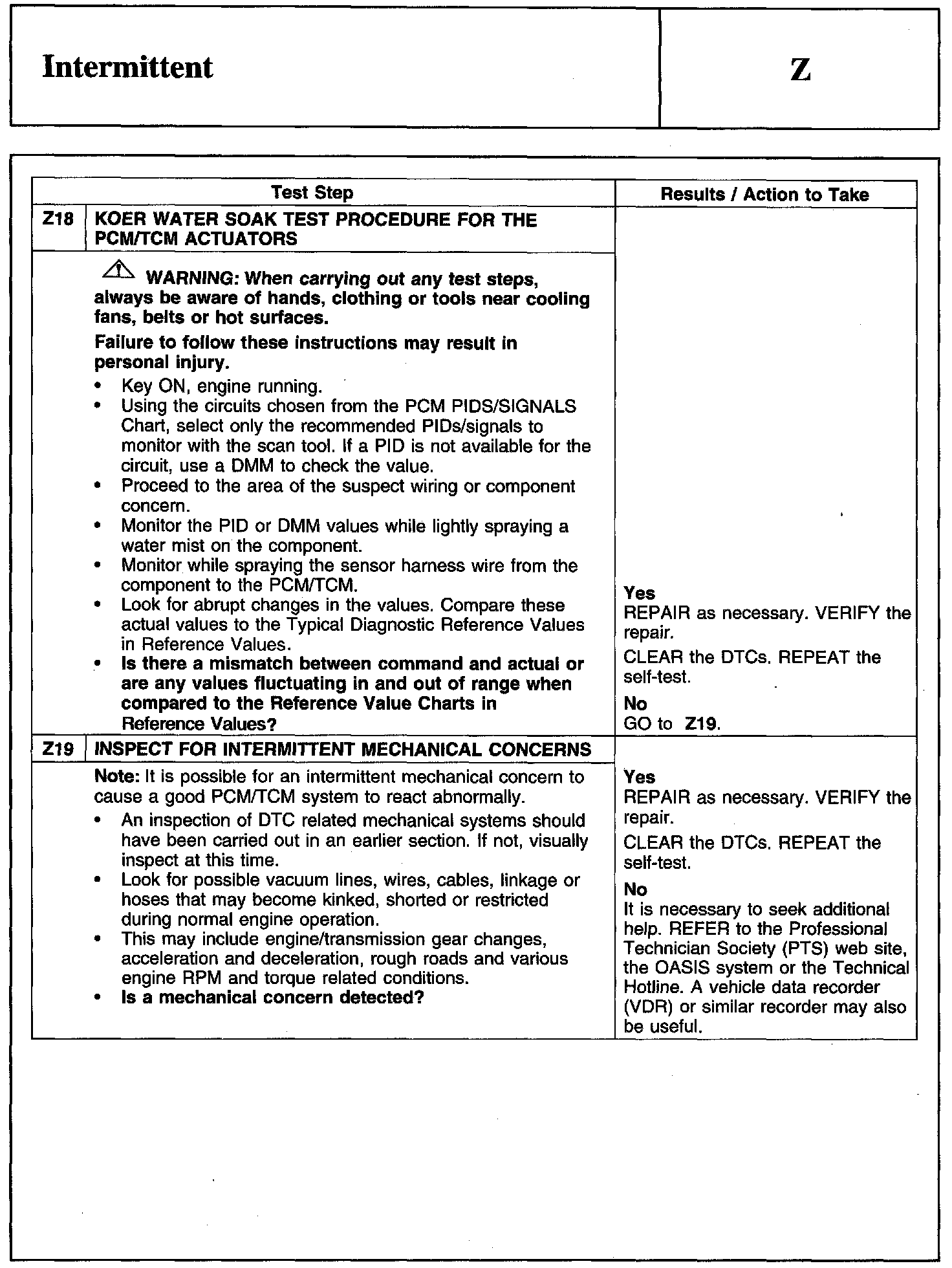 PINPOINT TEST Z: INTERMITTENT