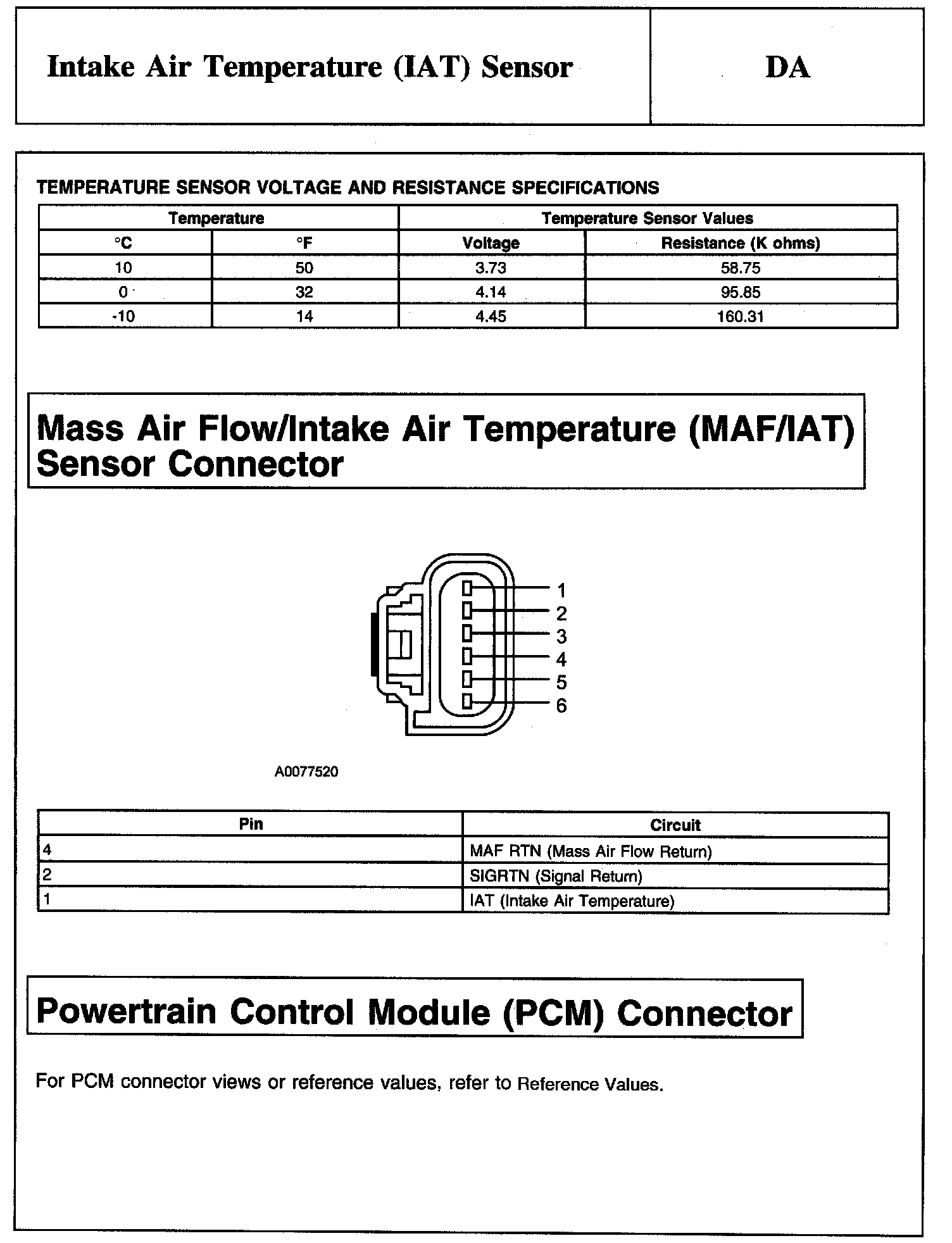 PINPOINT TEST DA: INTAKE AIR TEMPERATURE (IAT) SENSOR
