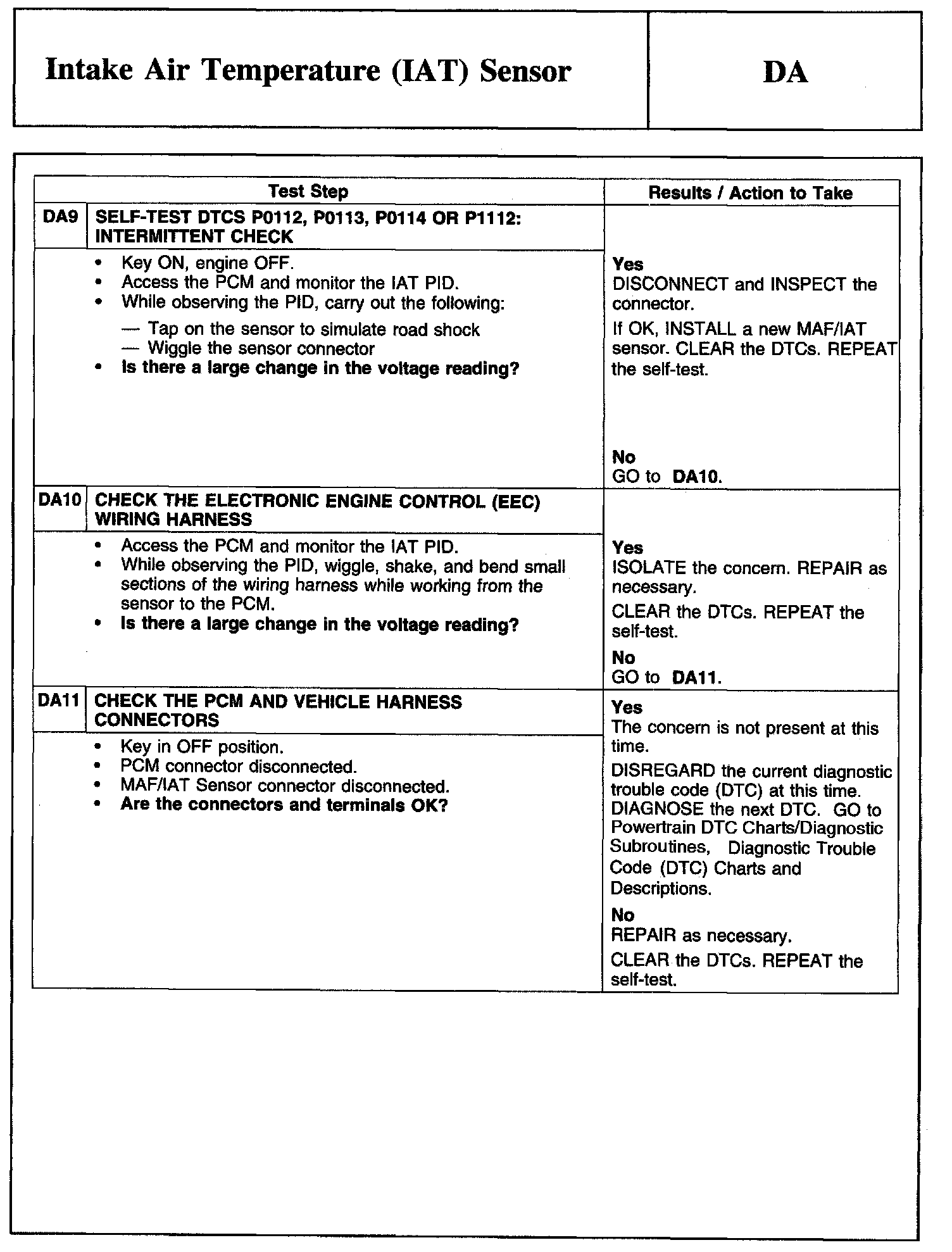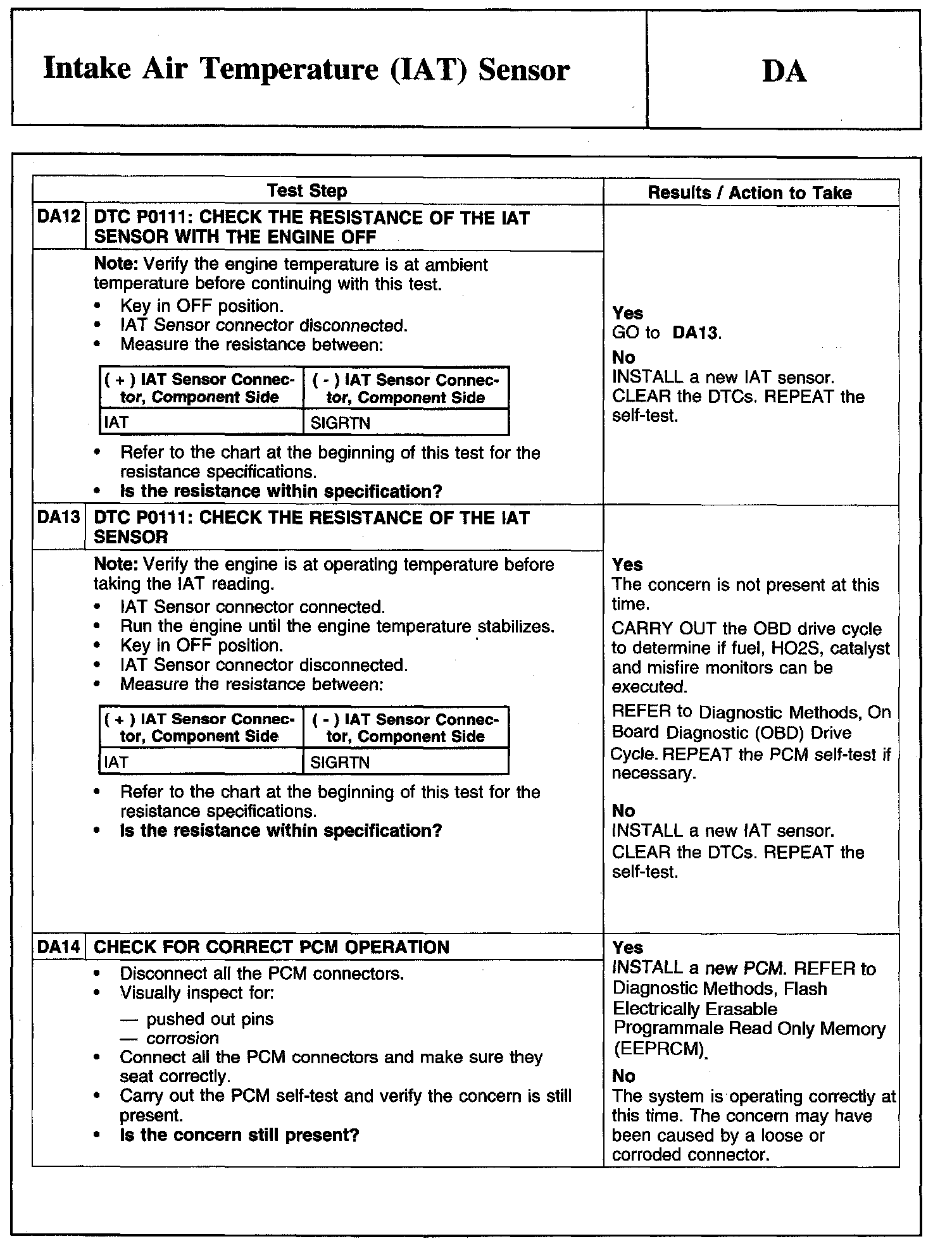 Tests DA: Intake Air Temperature (IAT) Sensor