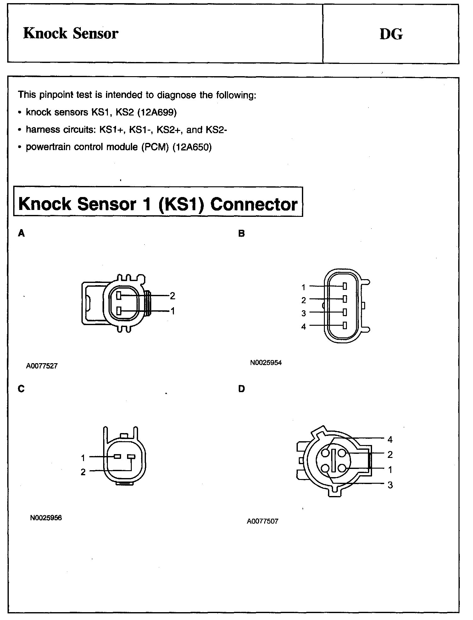 Knock Sensor 1 (KS1) Connector Continued: