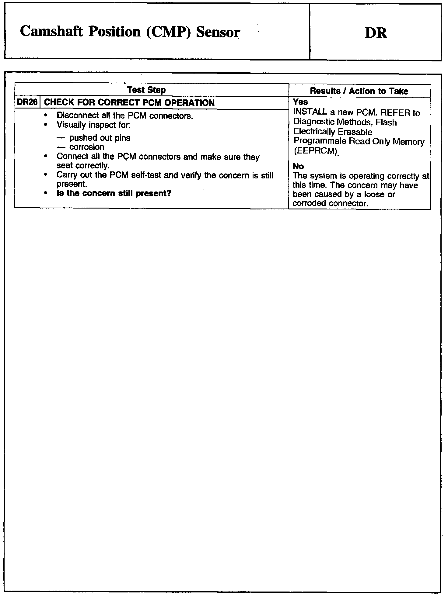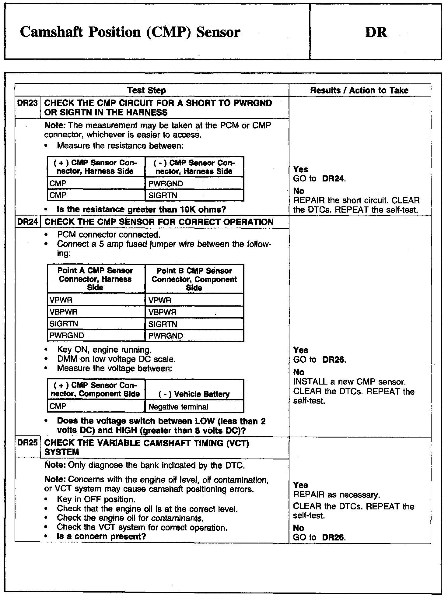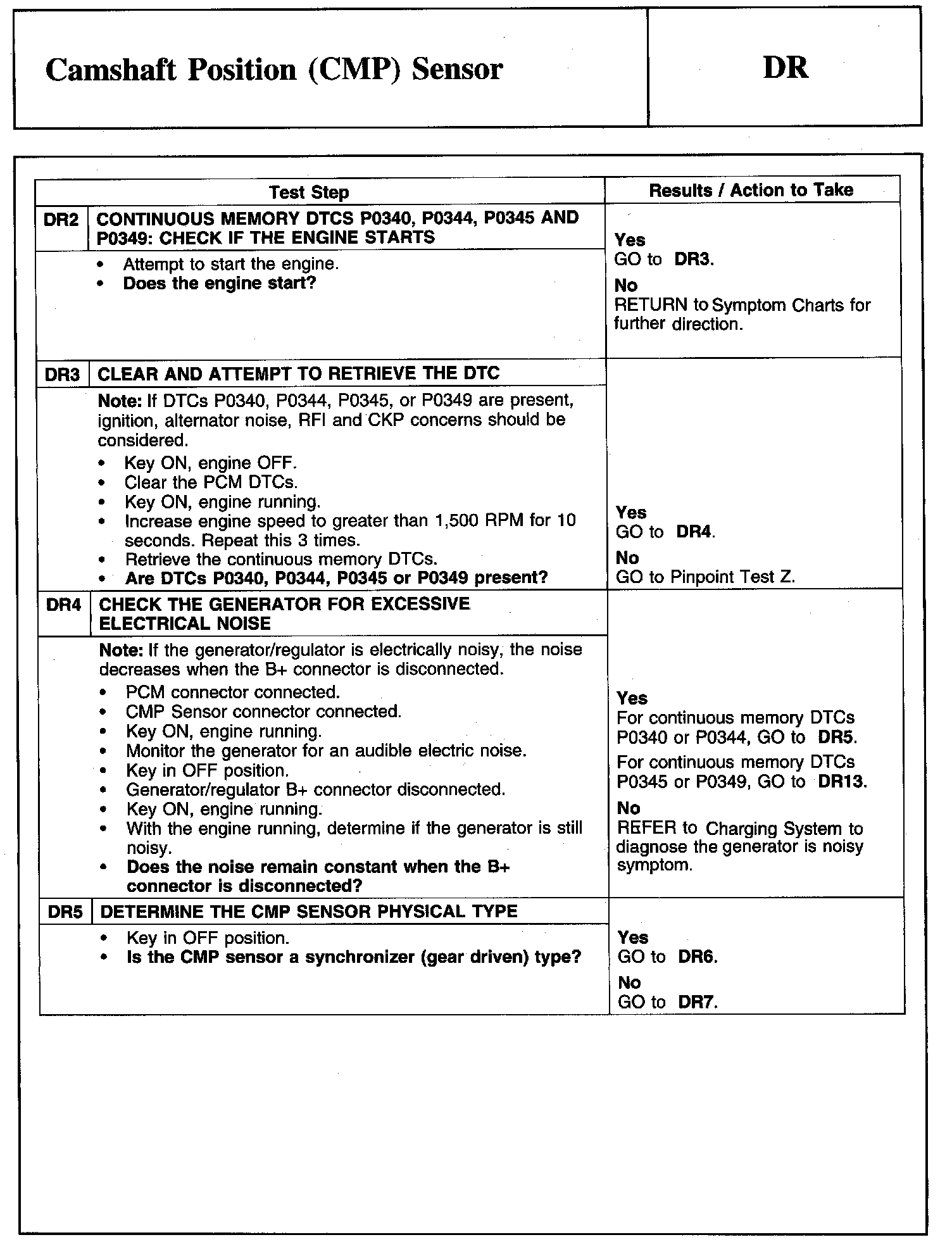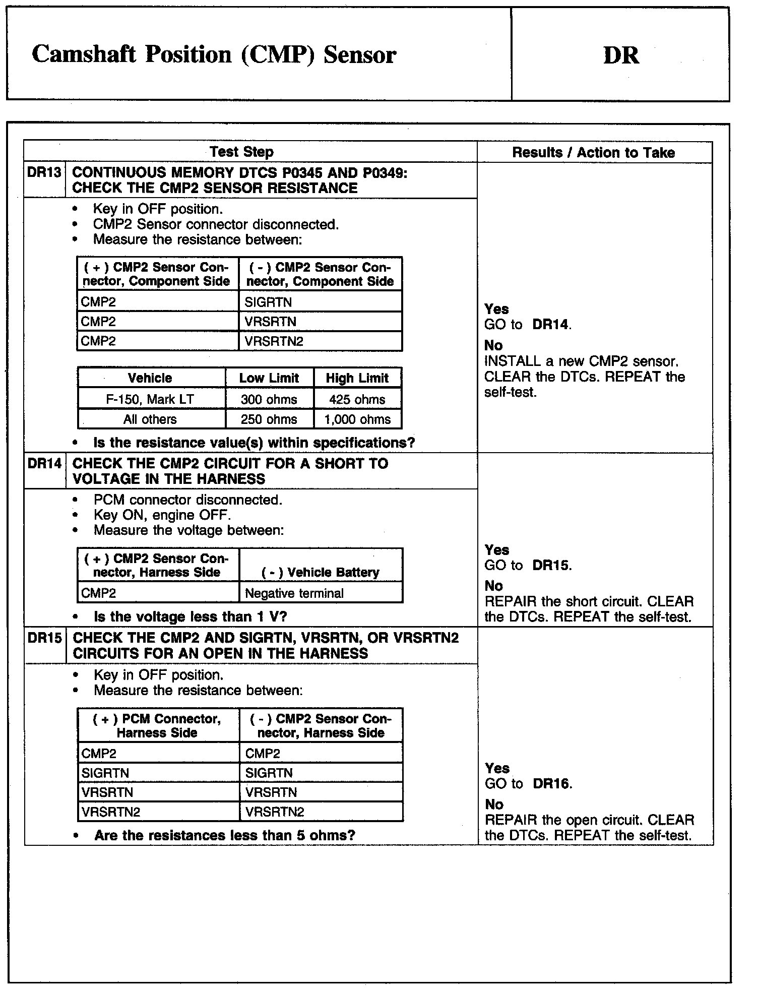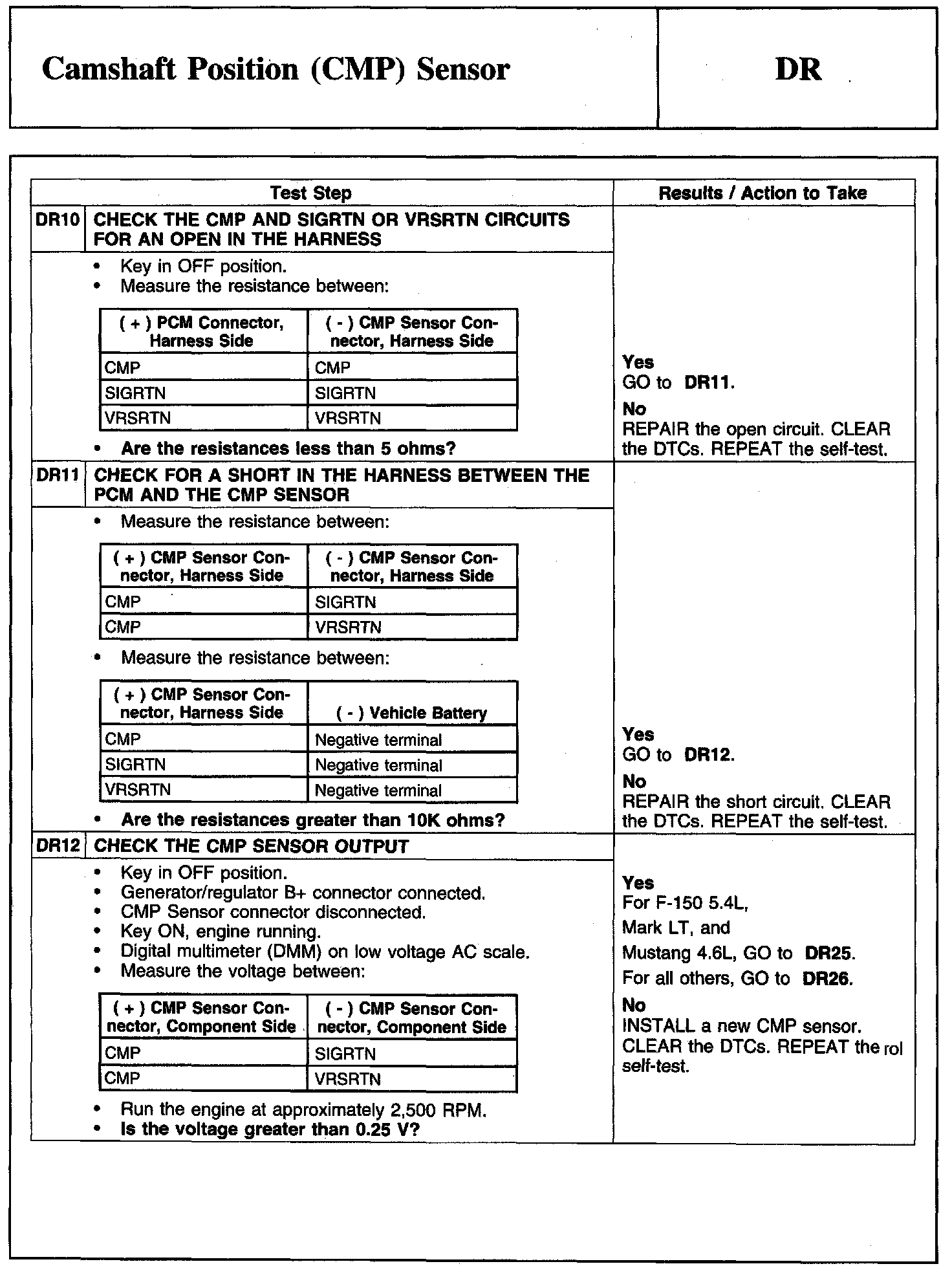 Tests DR: Camshaft Position (CMP) Sensor